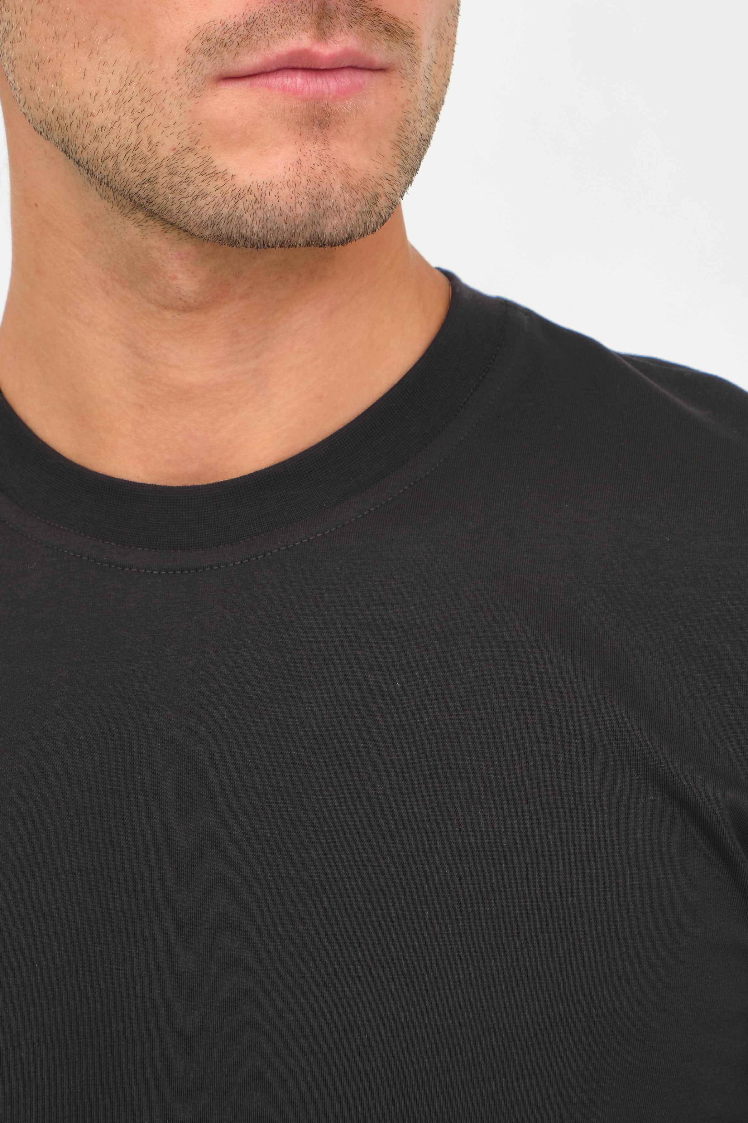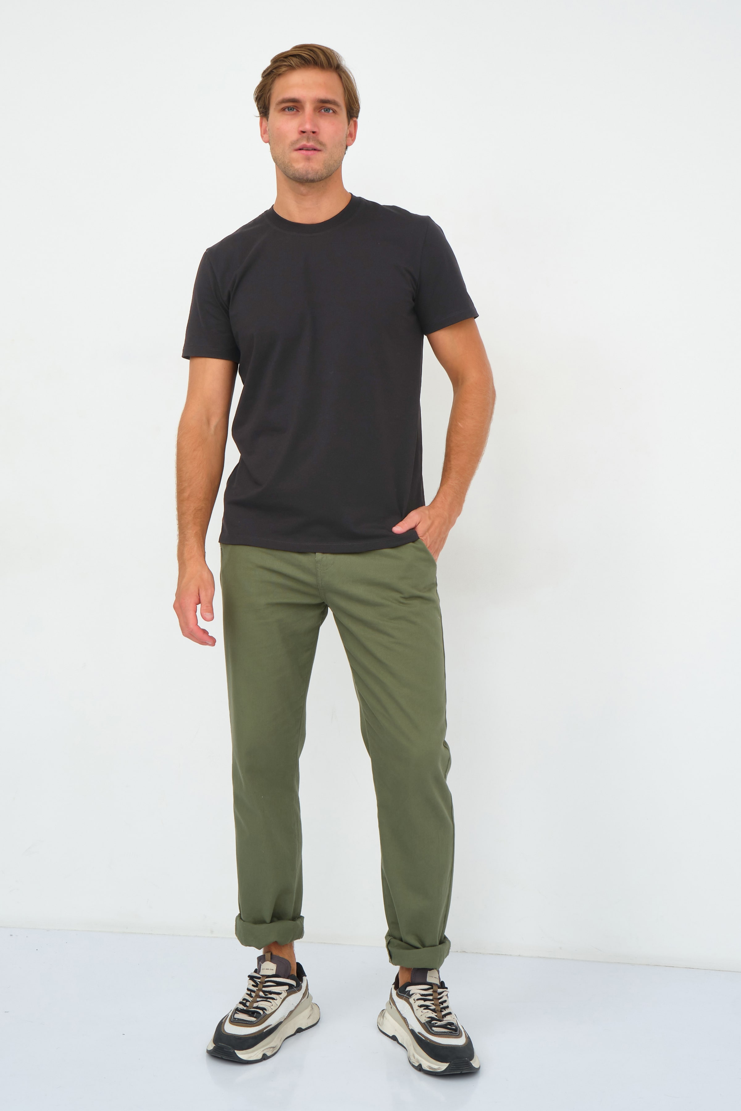 Однотонная базовая модель футболки прямого кроя с коротким рукавом и круглым воротом незаменимый атрибут мужского гардероба.