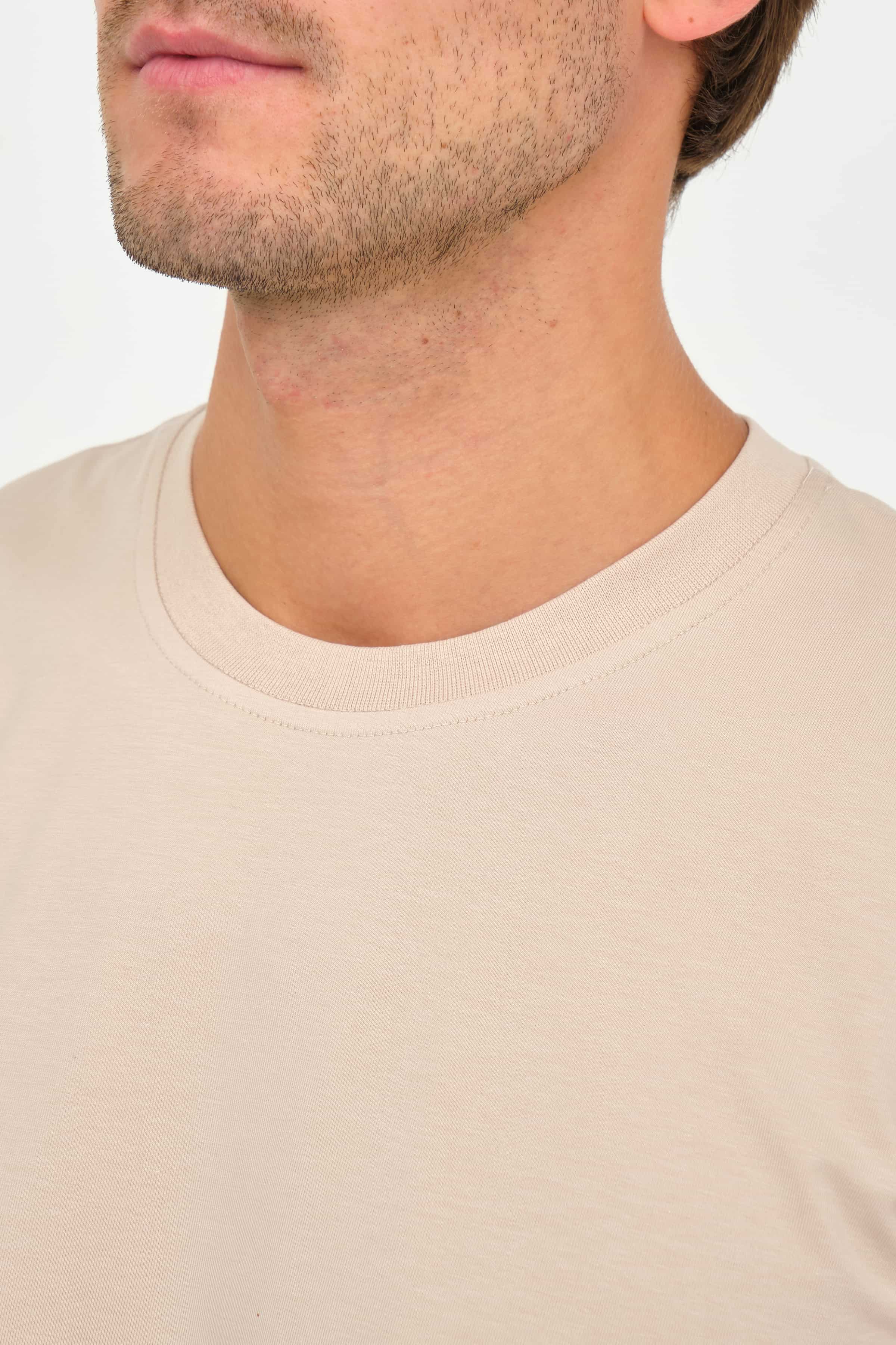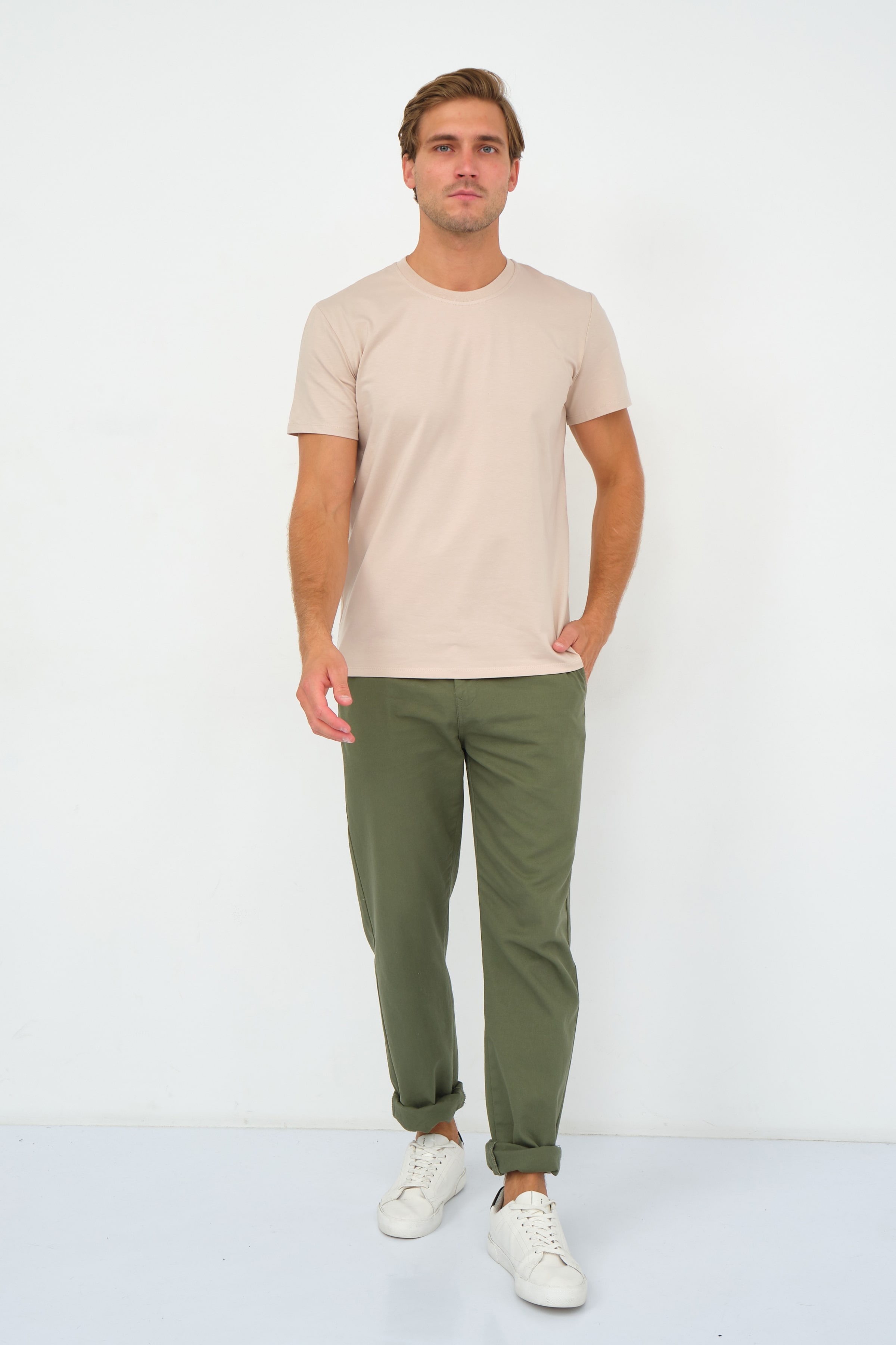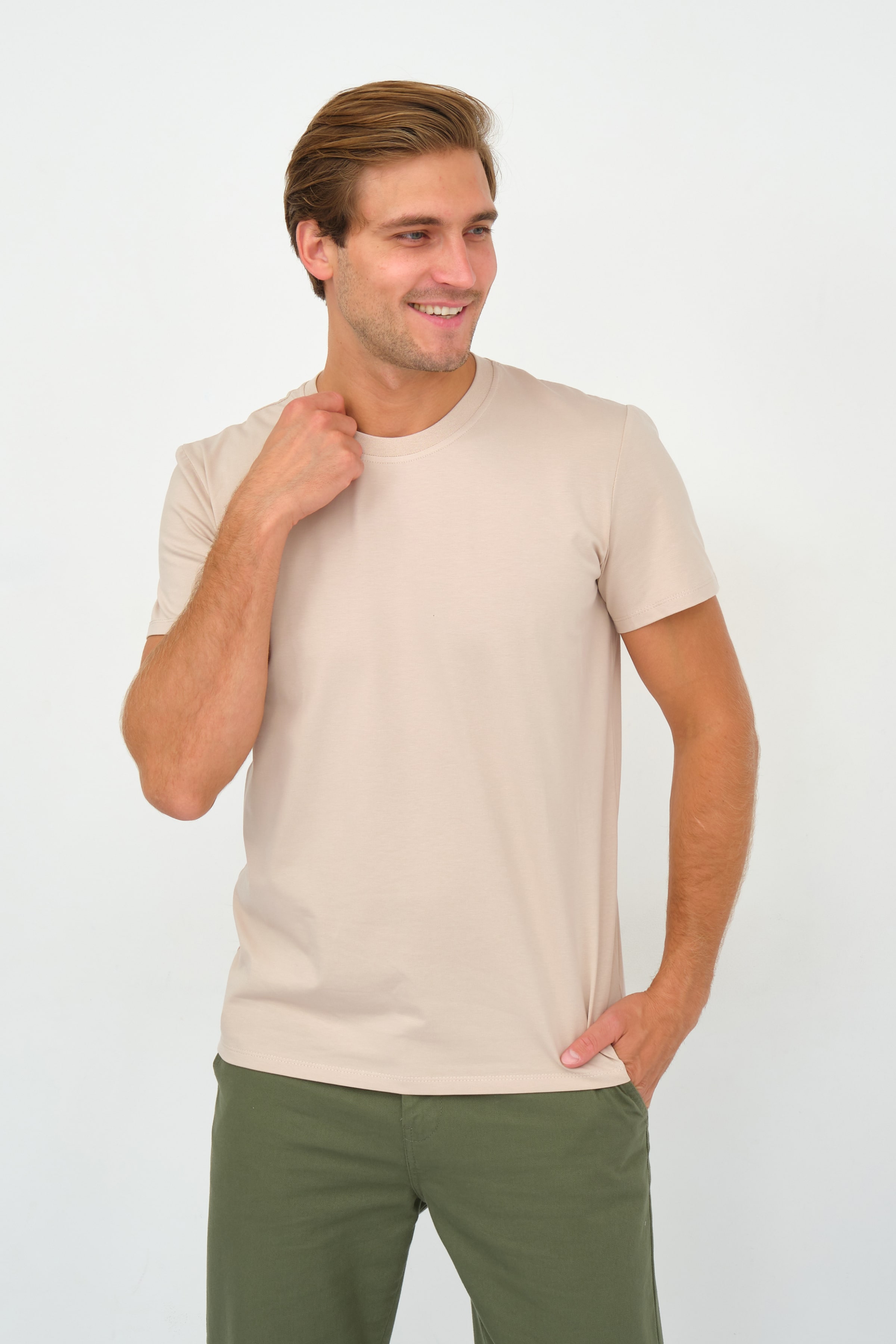 Однотонная базовая модель футболки прямого кроя с коротким рукавом и круглым воротом незаменимый атрибут мужского гардероба.