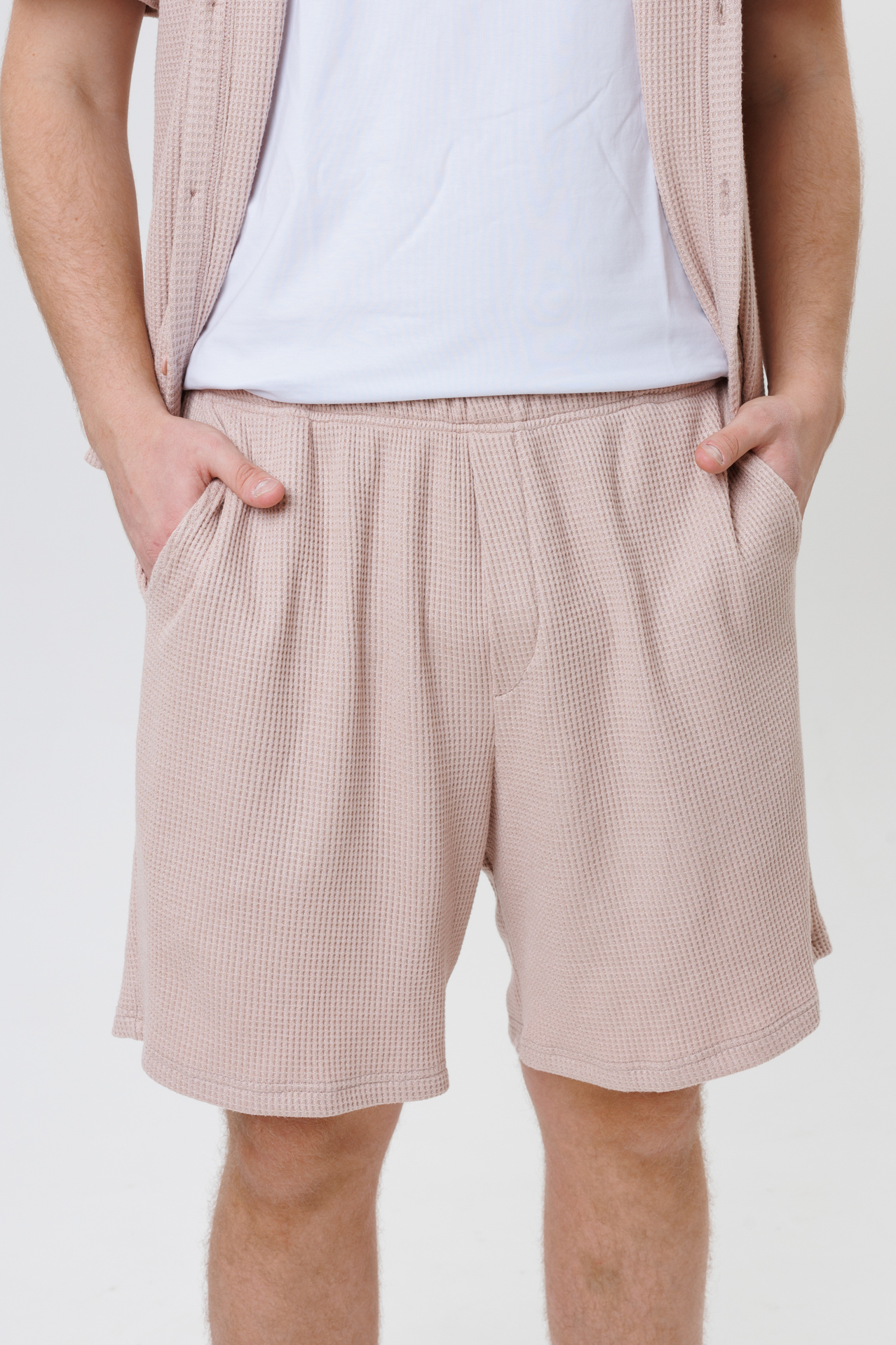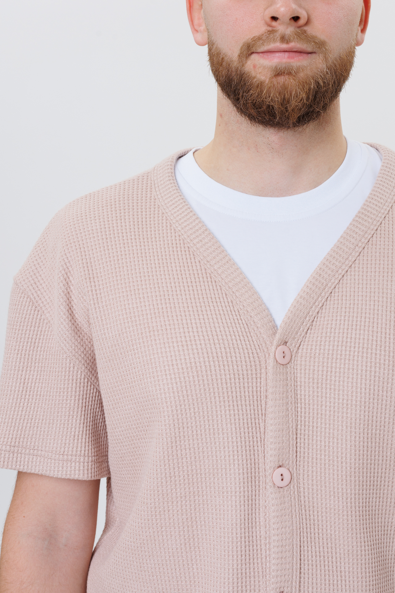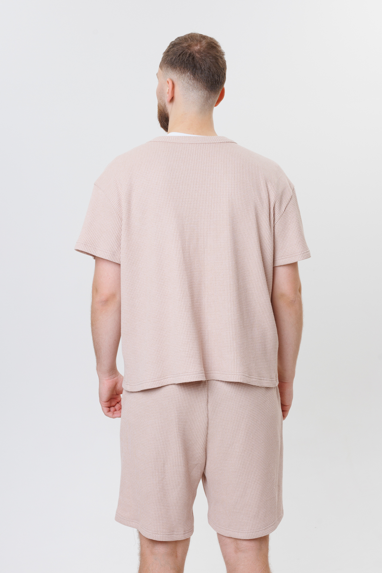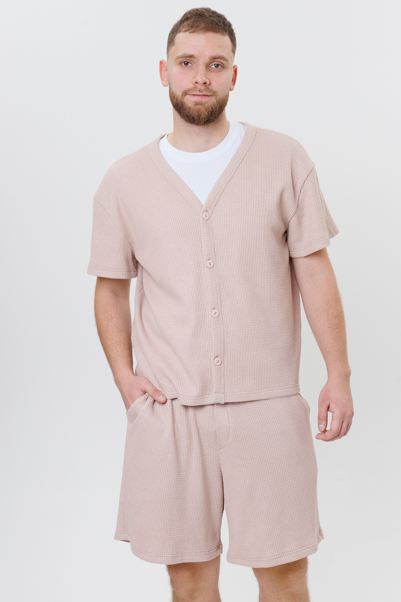 Комплект состоит из рубашки и шорт. Свободная рубашка на пуговицах с V-образным вырезом. Шорты на эластичной резинке. Комплект можно использовать для стильных расслабленных образов как на улице так и дома.
