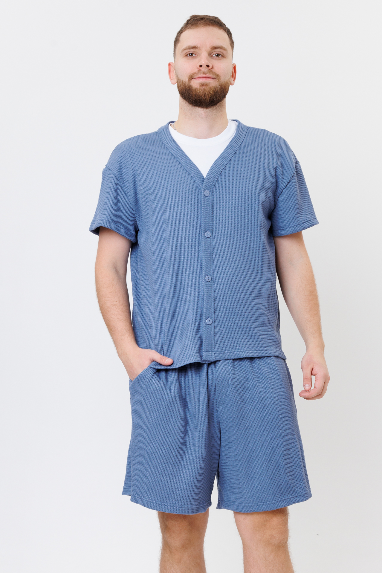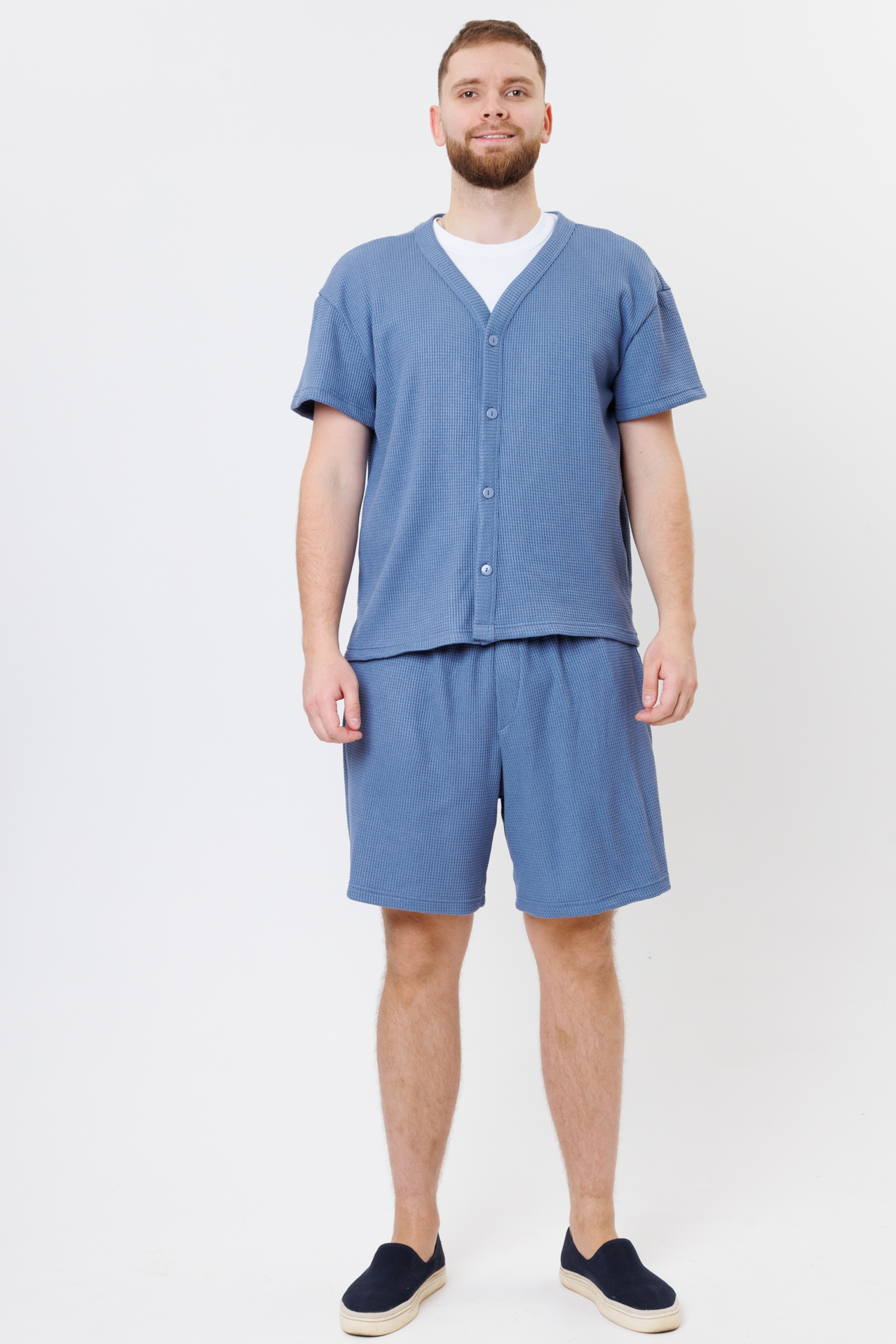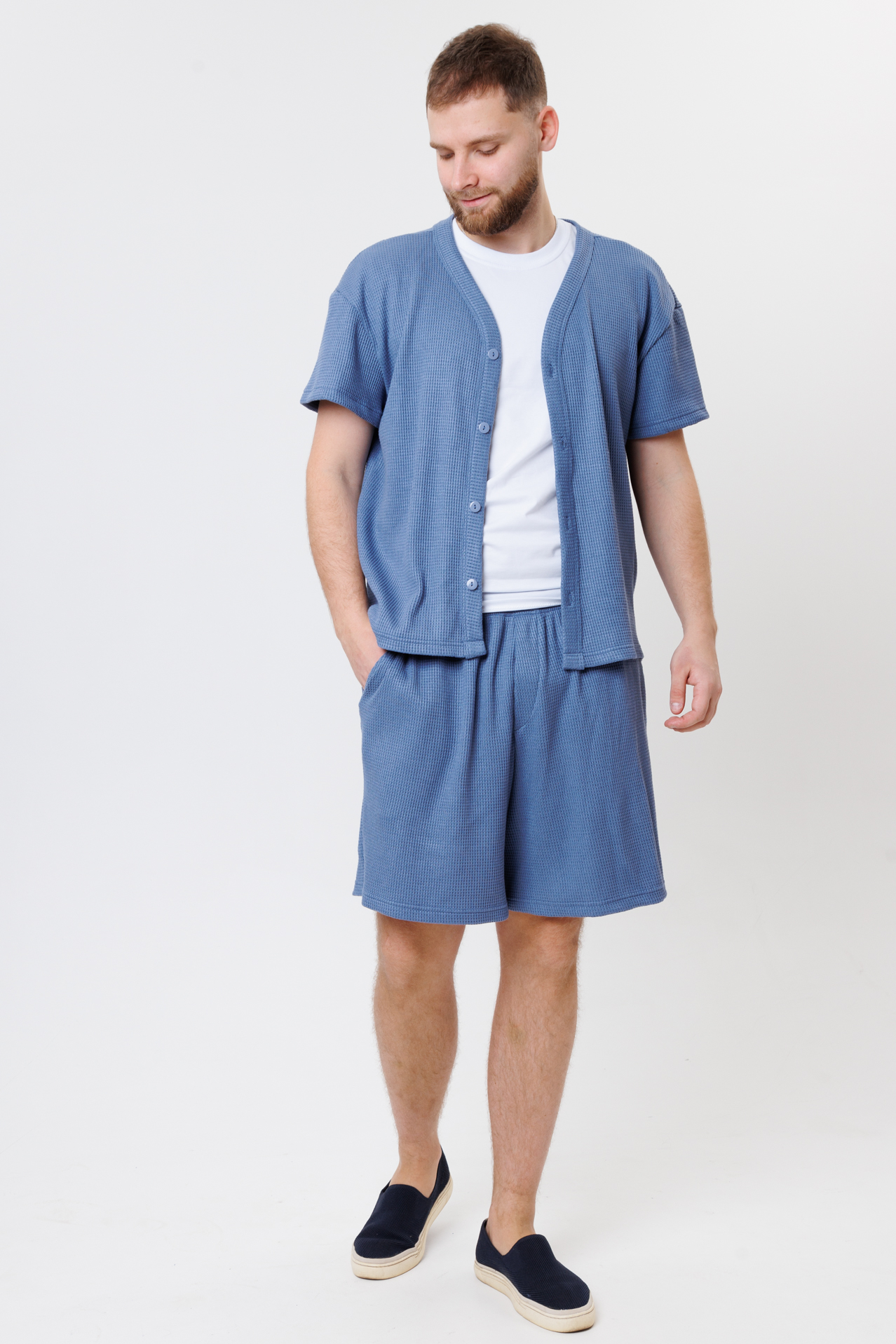 Комплект состоит из рубашки и шорт. Свободная рубашка на пуговицах с V-образным вырезом. Шорты на эластичной резинке. Комплект можно использовать для стильных расслабленных образов как на улице так и дома.