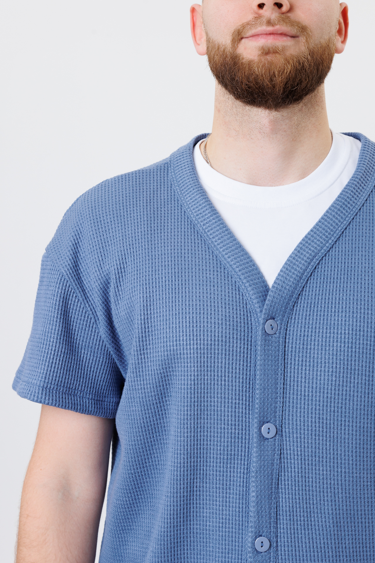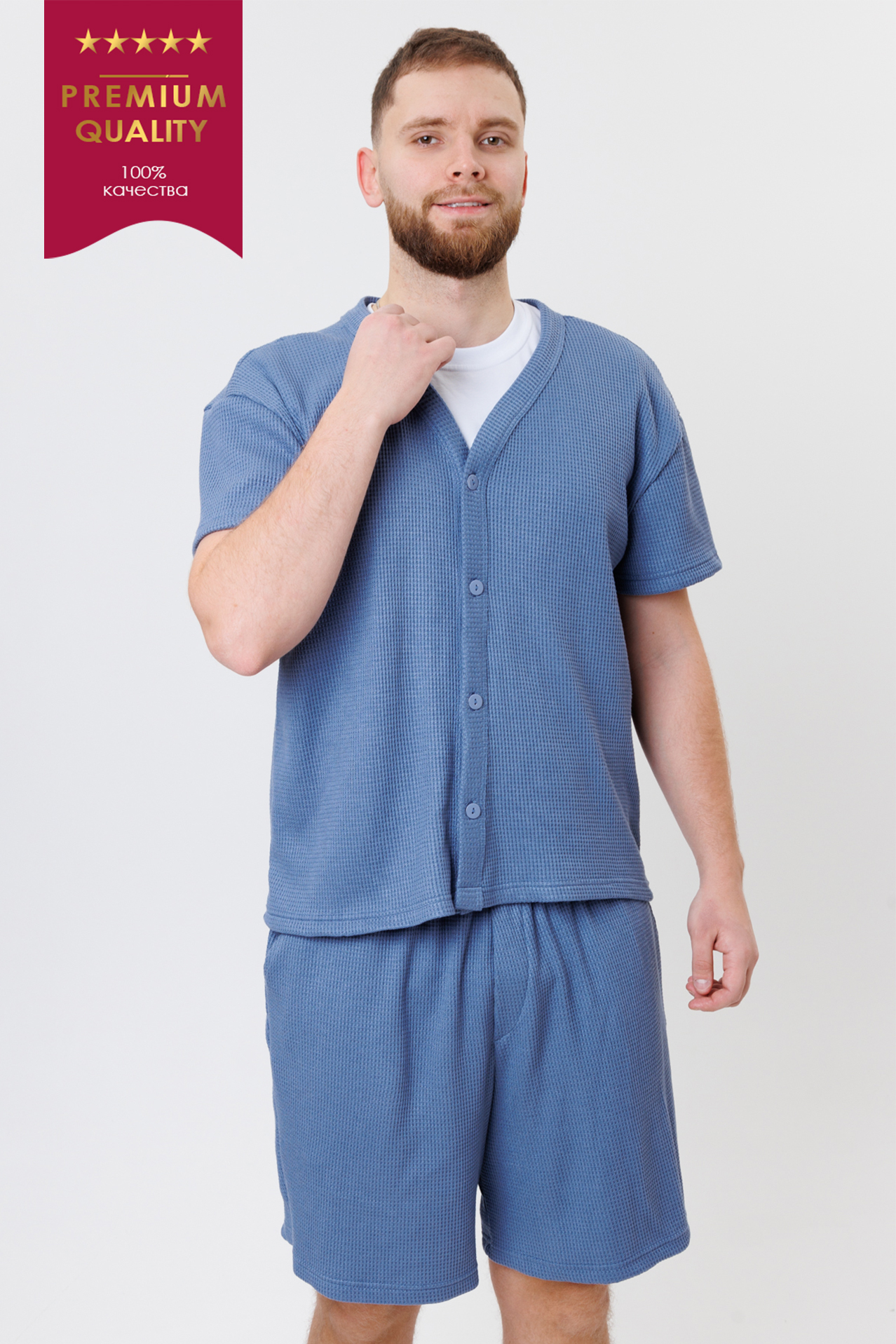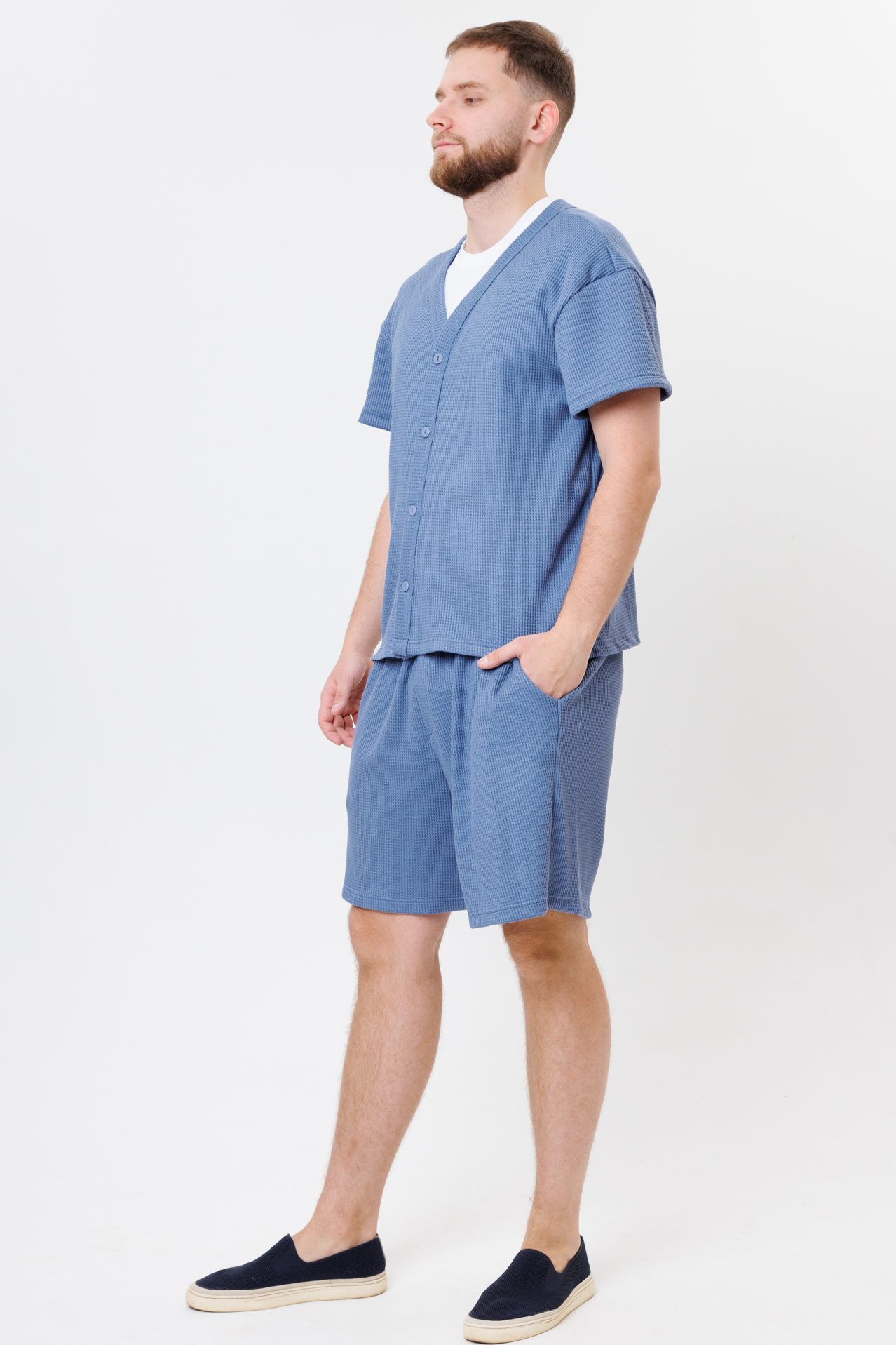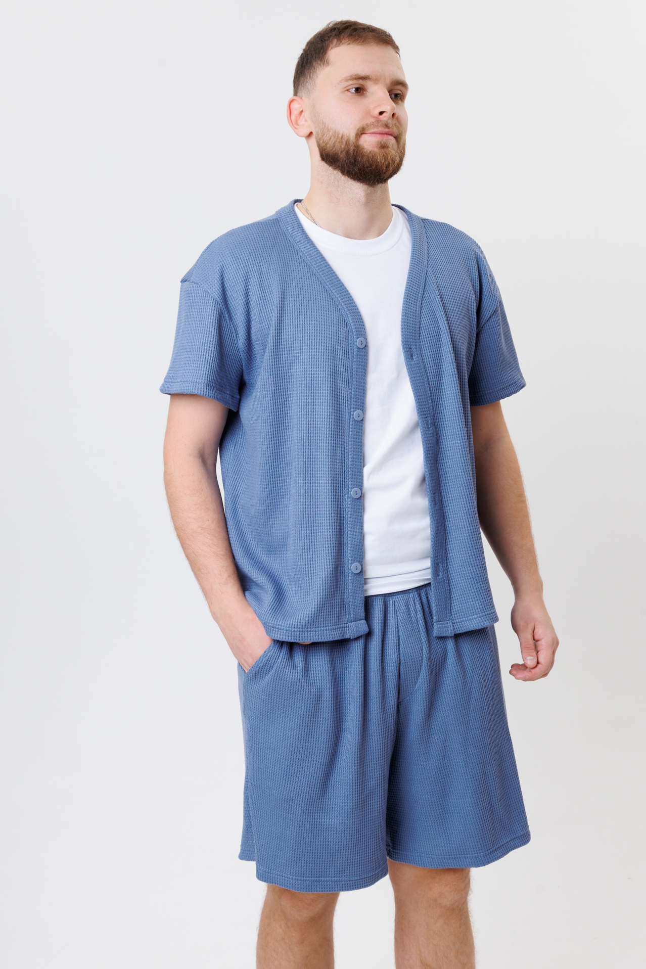 Комплект состоит из рубашки и шорт. Свободная рубашка на пуговицах с V-образным вырезом. Шорты на эластичной резинке. Комплект можно использовать для стильных расслабленных образов как на улице так и дома.