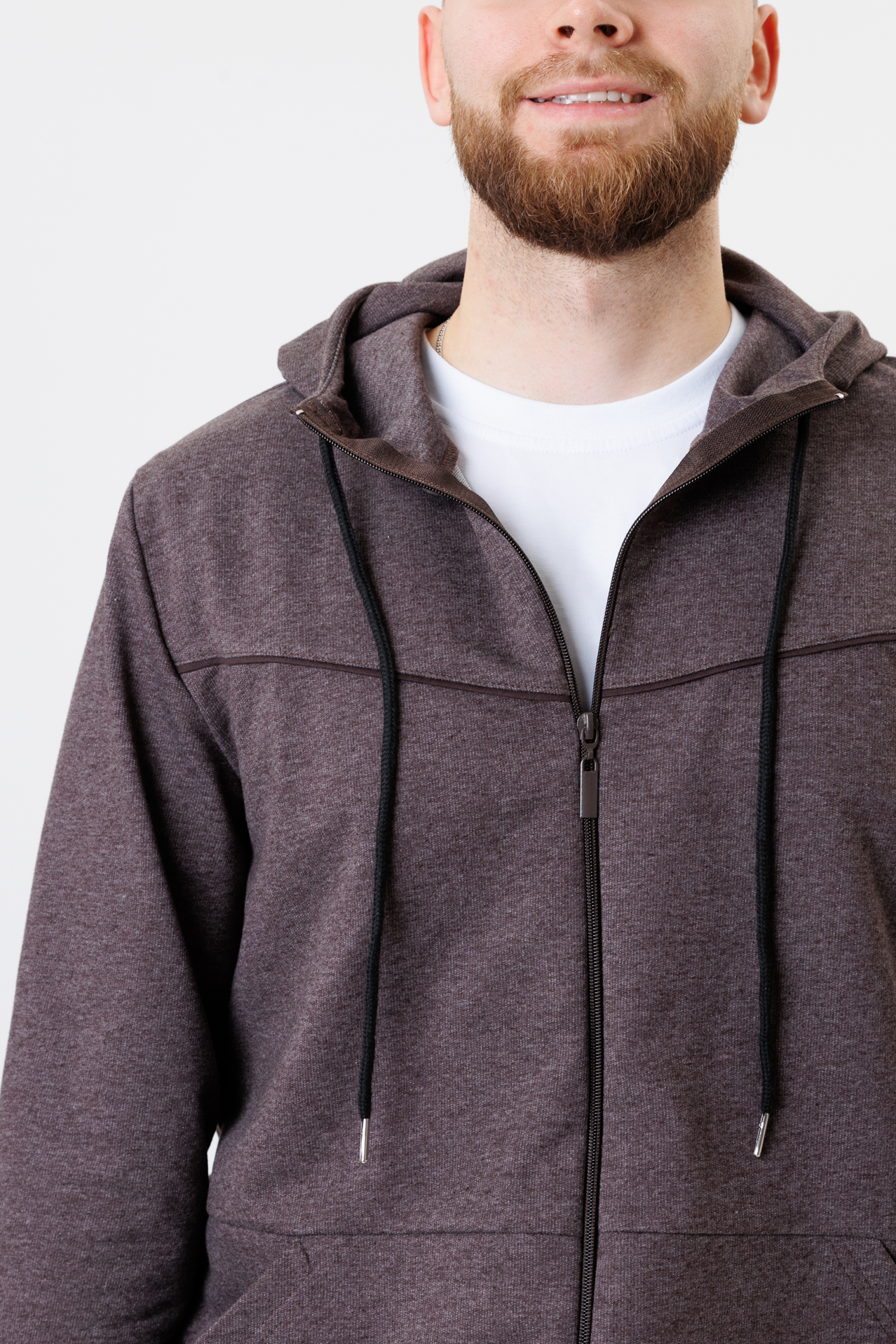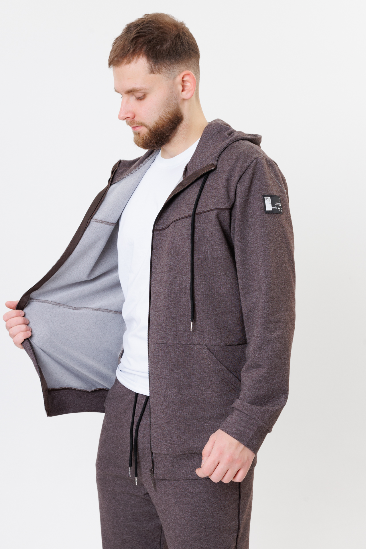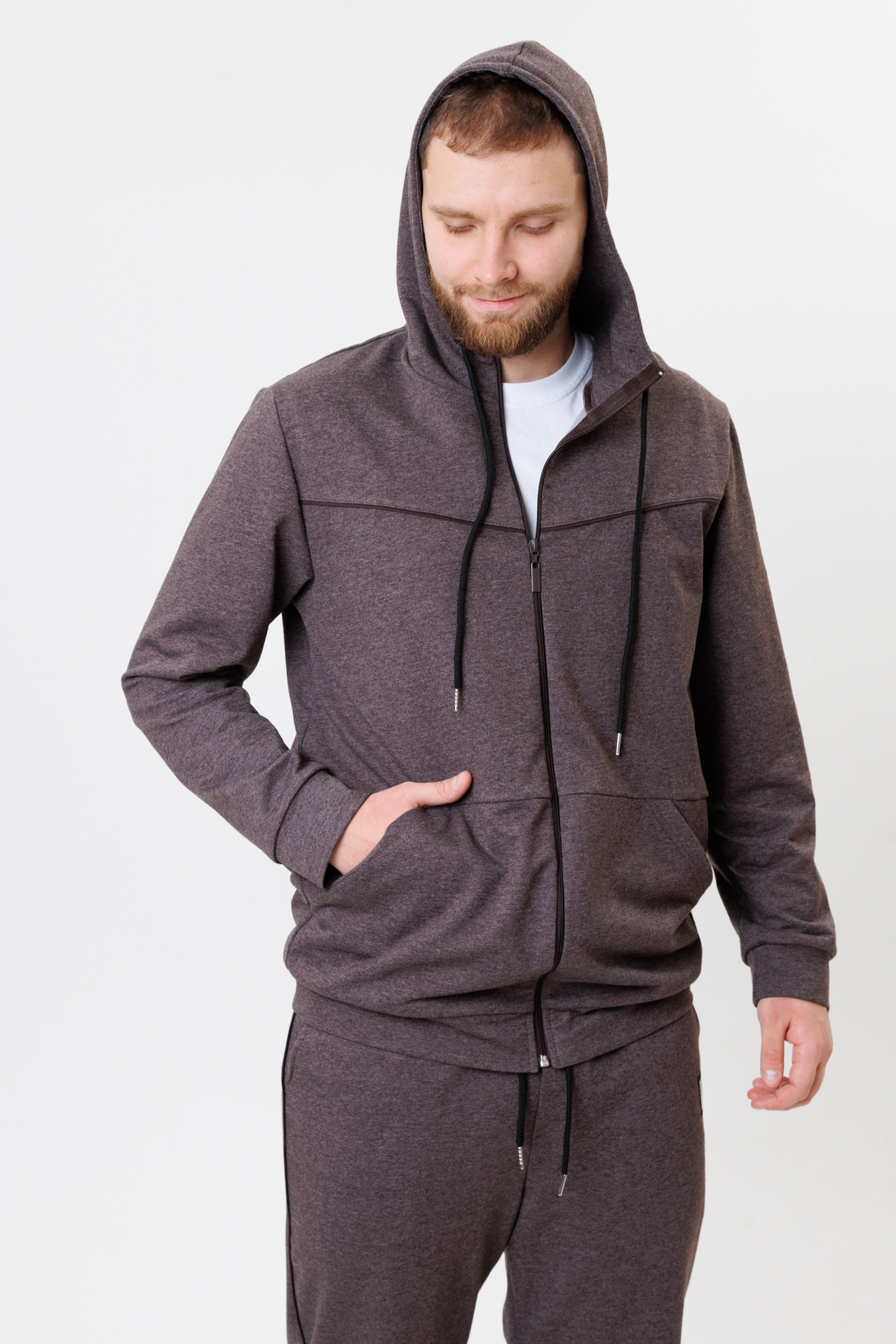 Кофта на молнии с капюшоном и глубокими карманами. На рукавах и по низу изделия (а также на брюках) предусмотрены манжеты, они дарят ощущение уюта, защищают от холода и ветра. Брюки с карманами. Пояс на широкой эластичной резинке со шнурком, который легко можно затянуть/ослабить и носить так, как удобно.