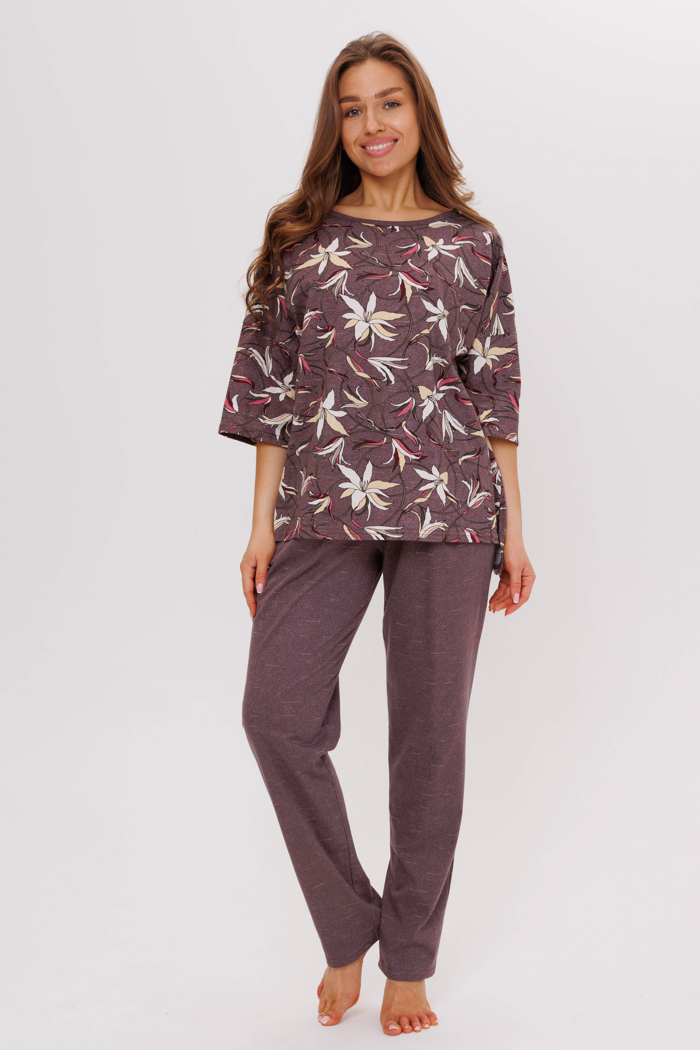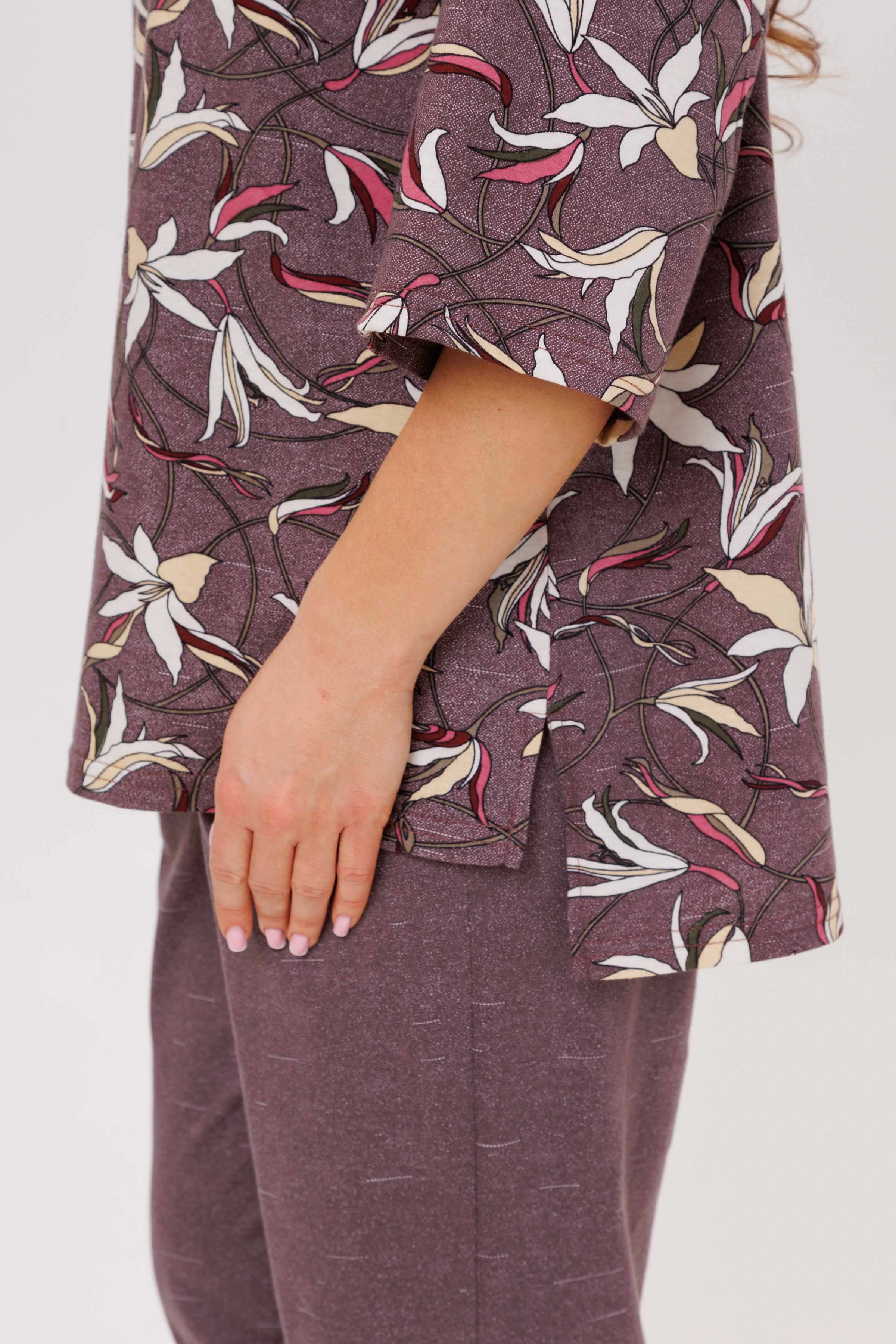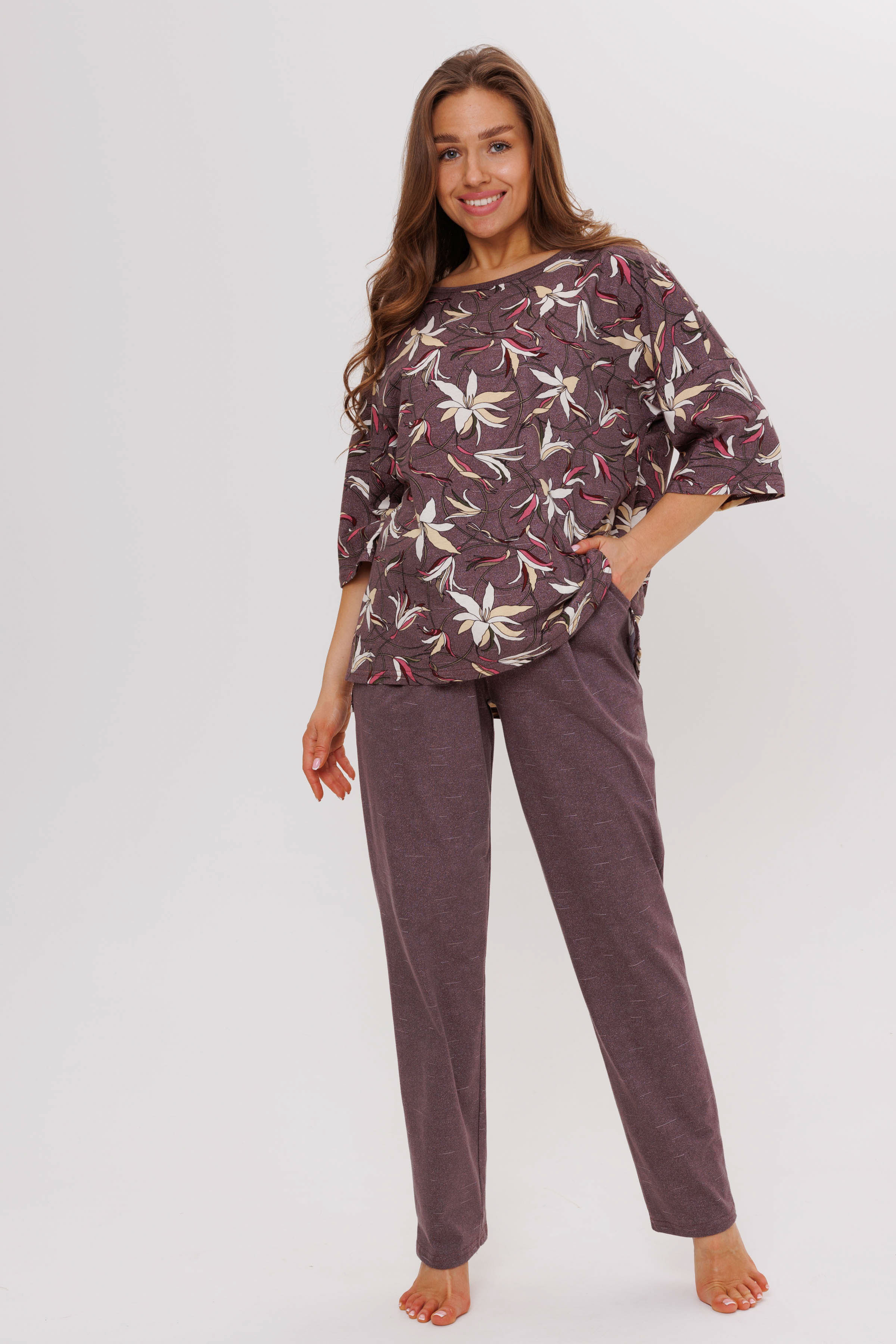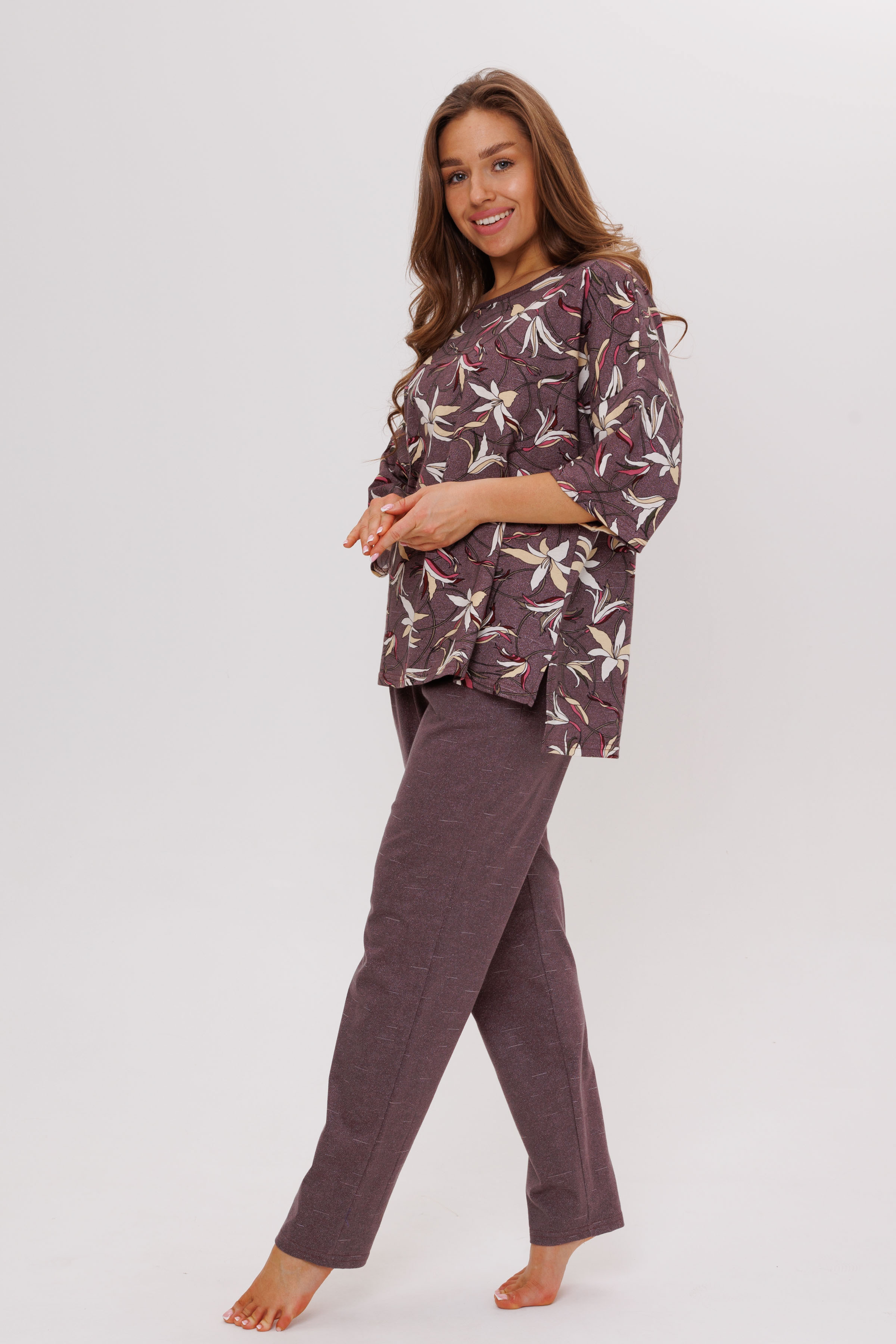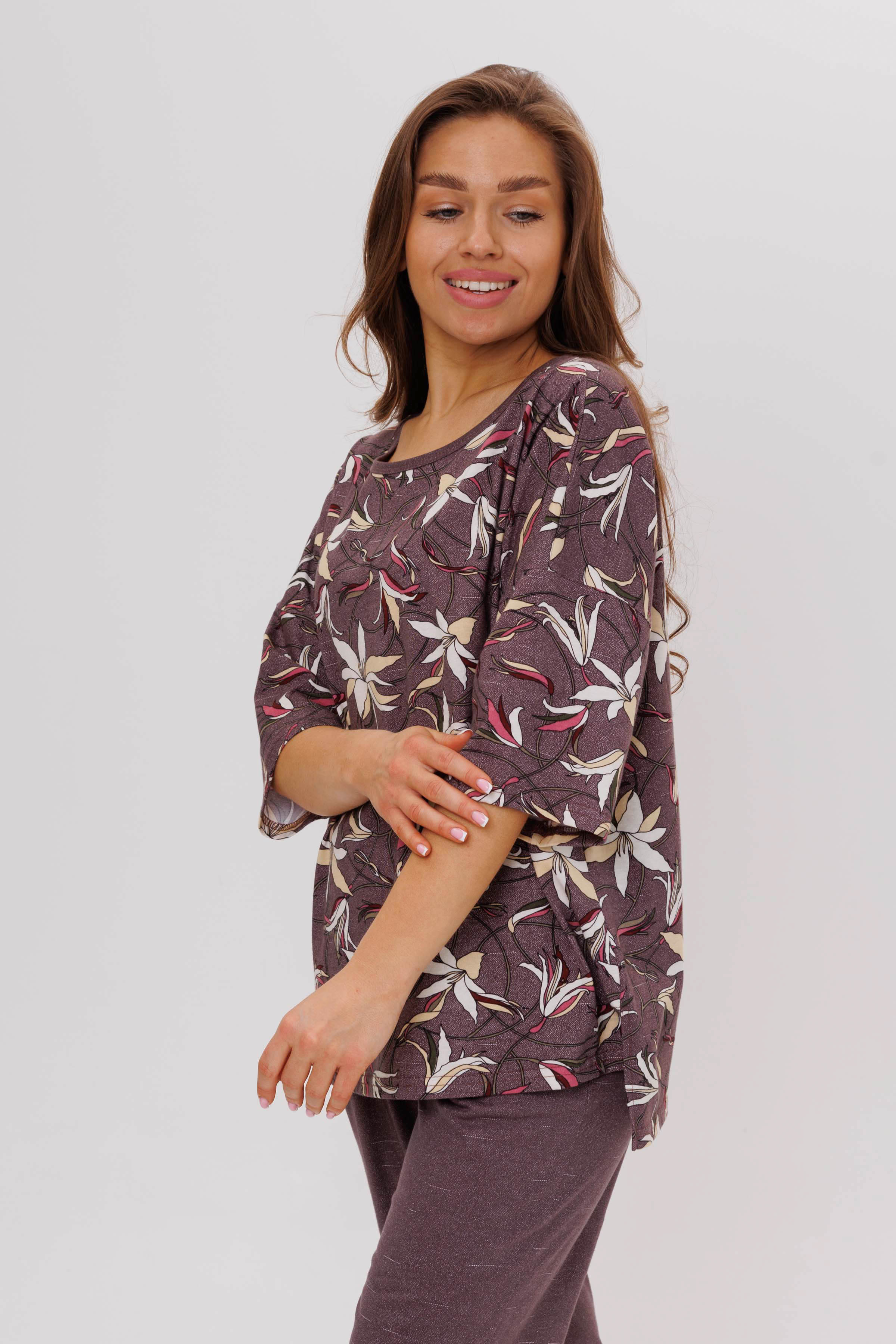 Женский домашний костюм свободного силуэта, выполненный из тканей-компаньонов.