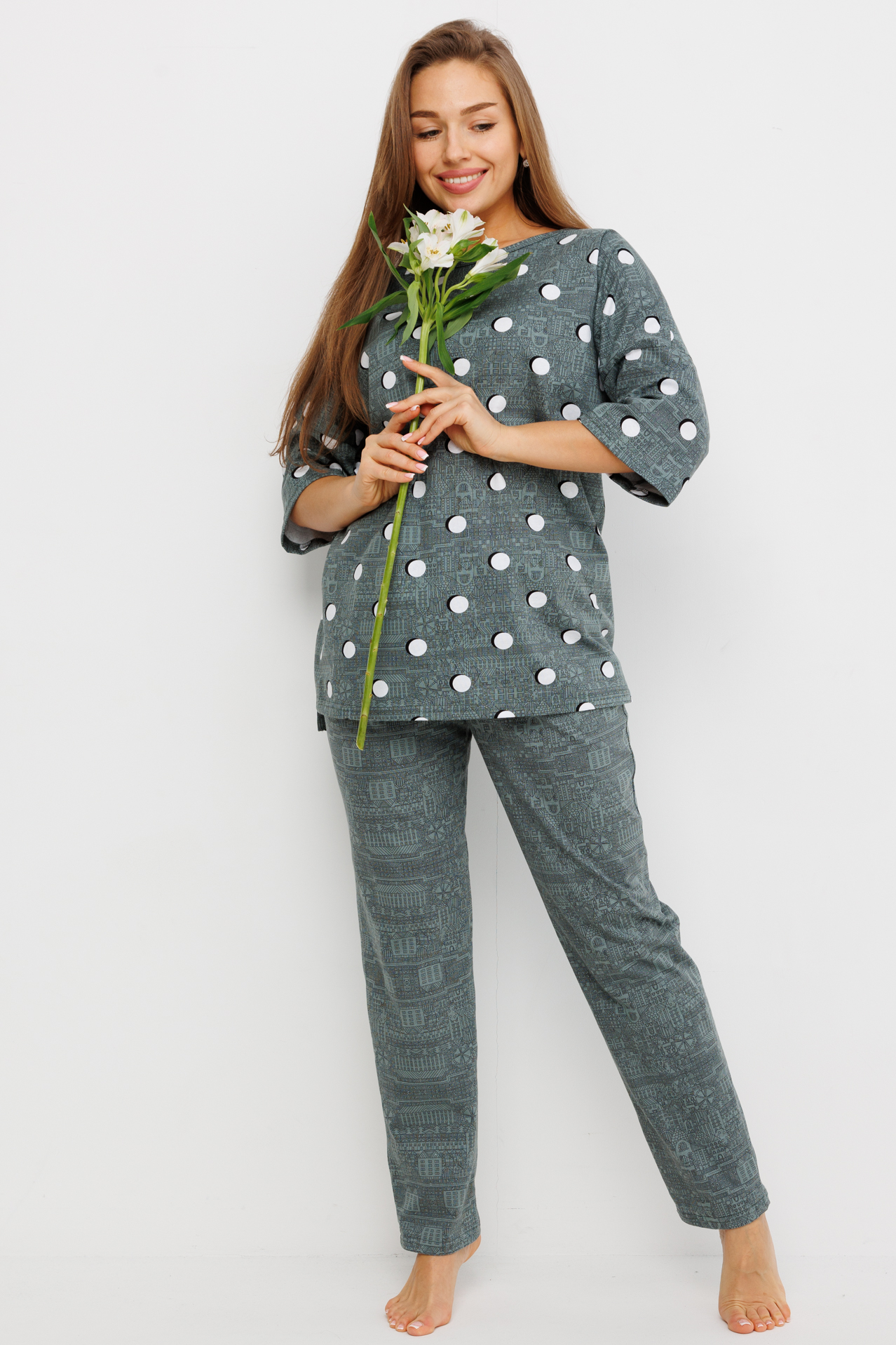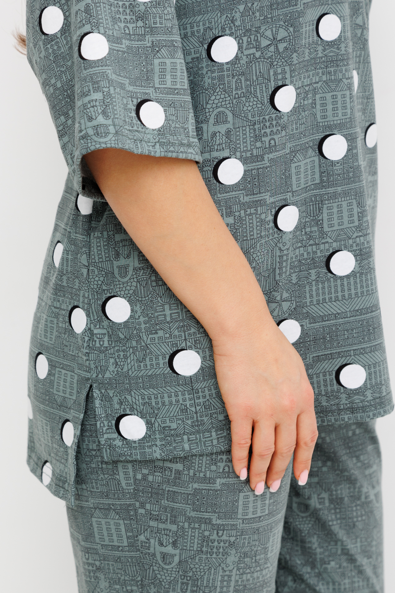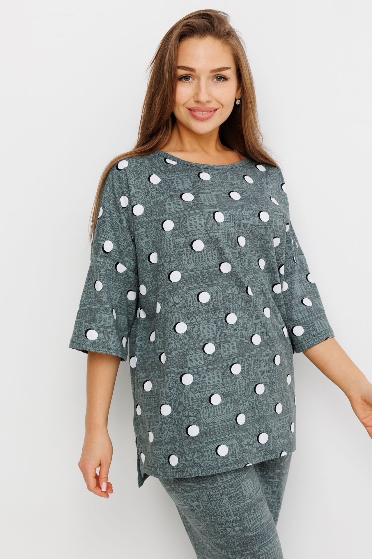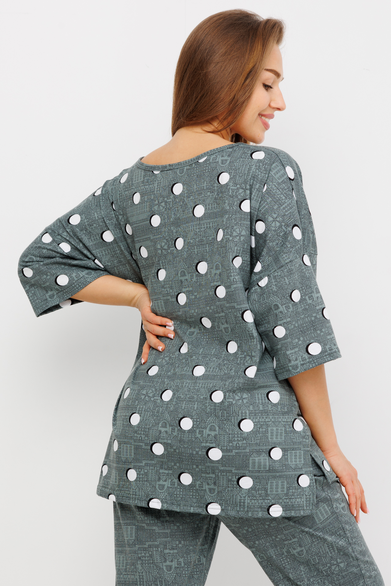 Женский домашний костюм свободного силуэта, выполненный из тканей-компаньонов.