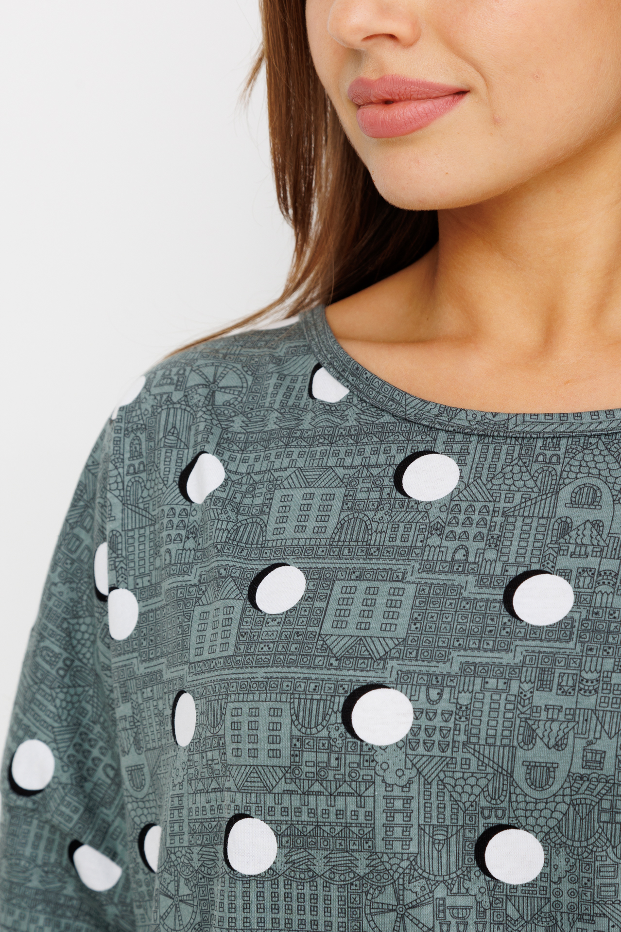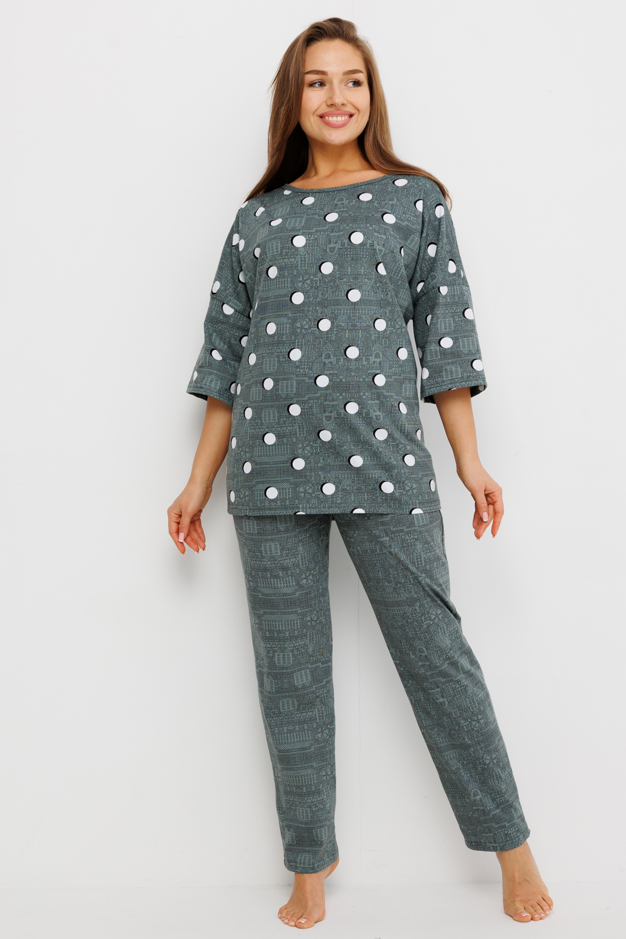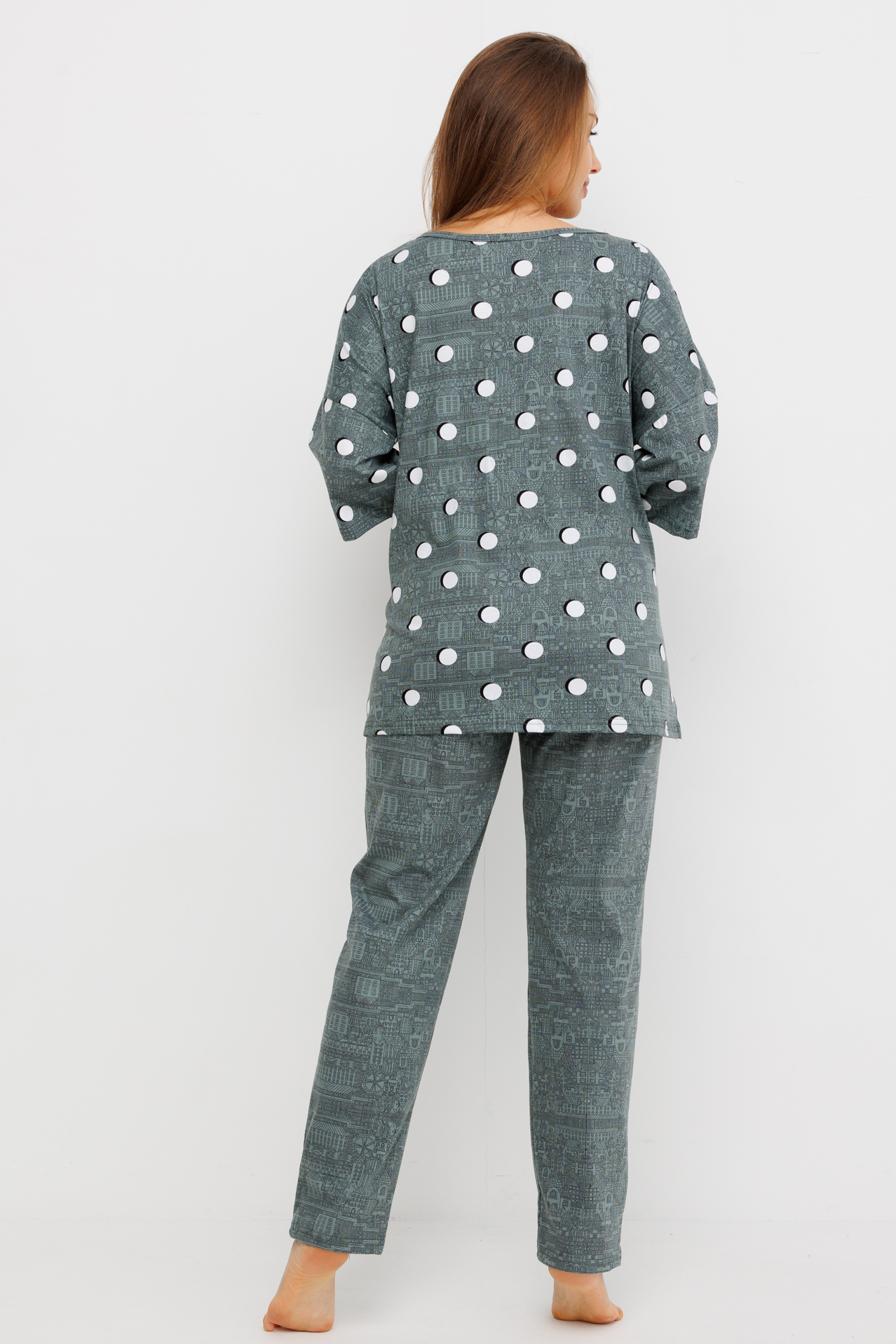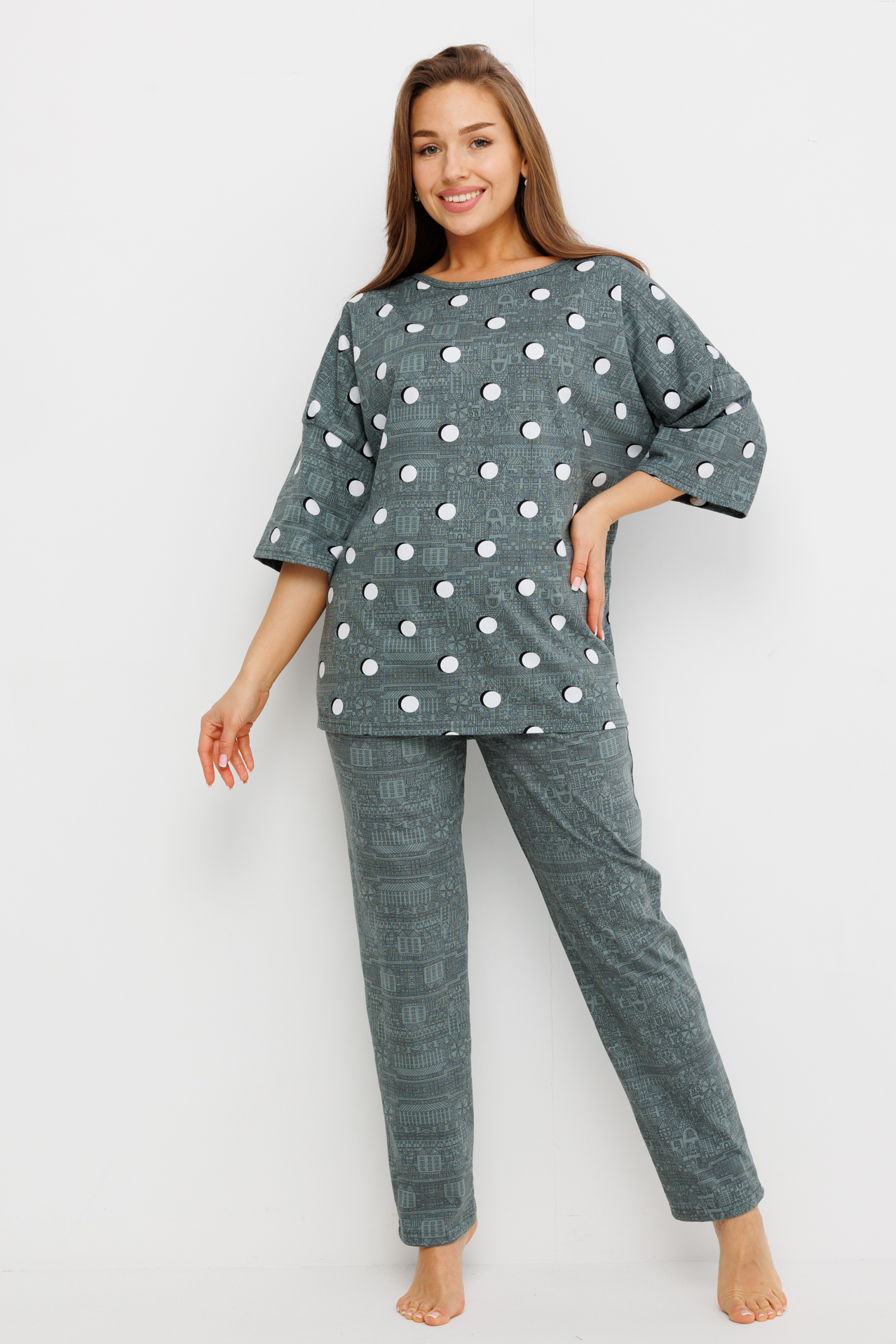 Женский домашний костюм свободного силуэта, выполненный из тканей-компаньонов.