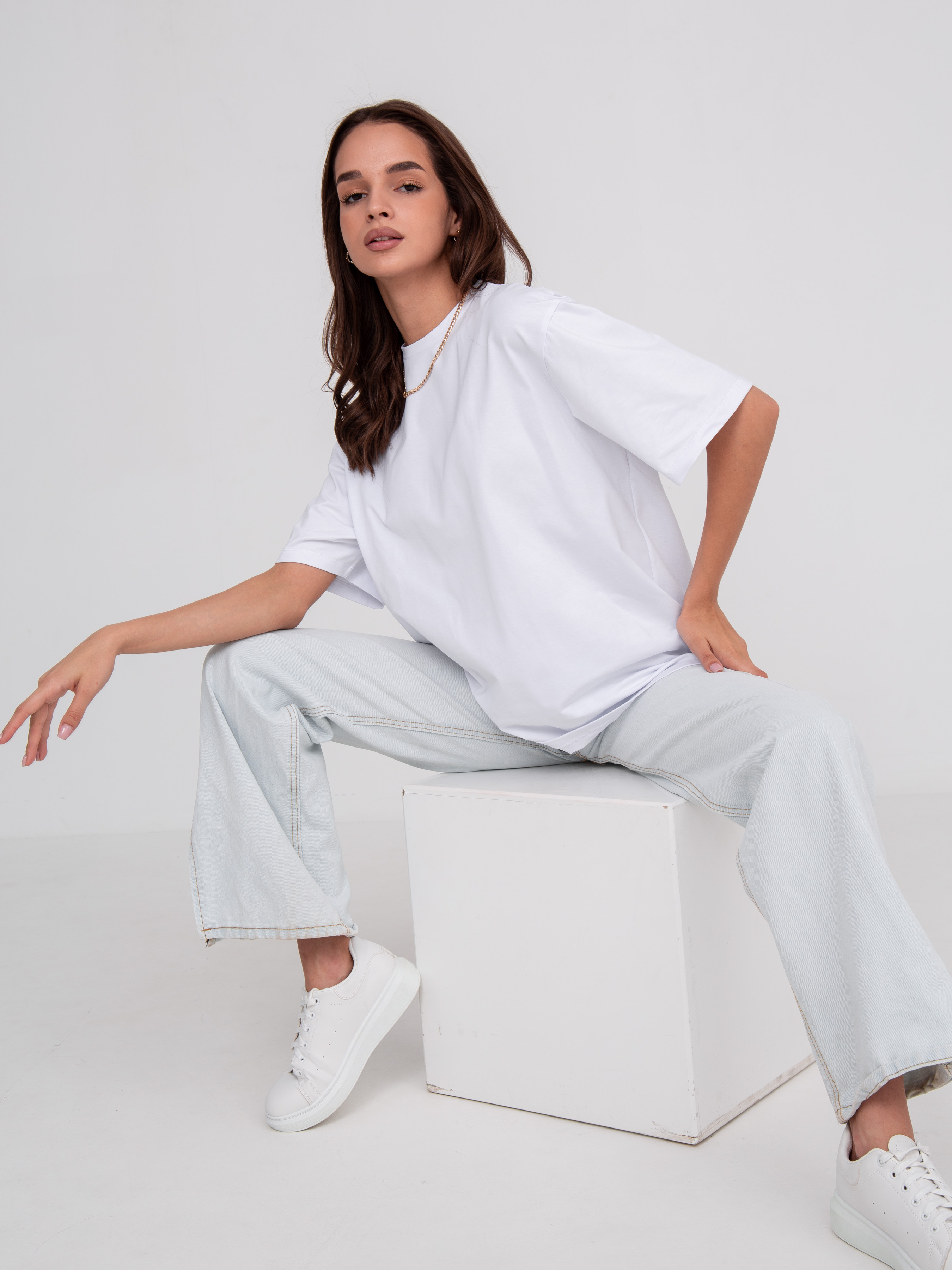 Футболка базовая однотонная, оверсайз.
