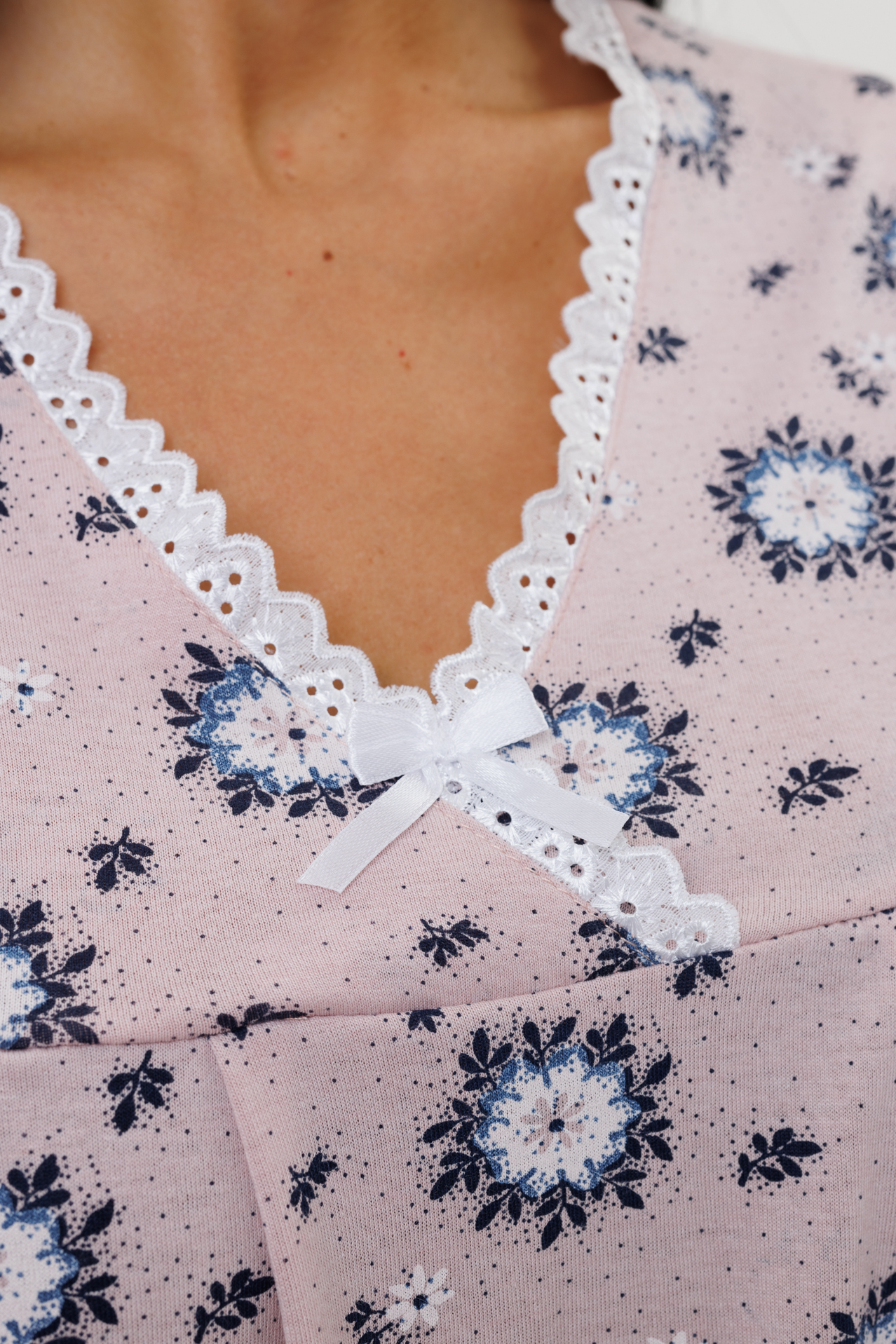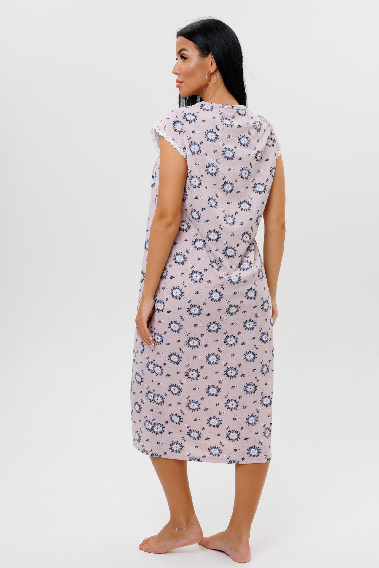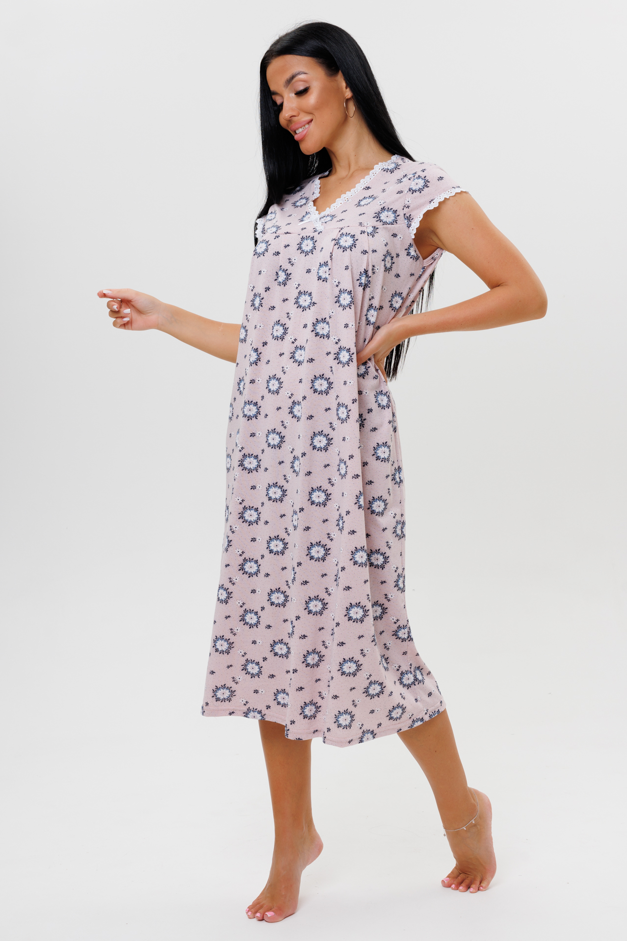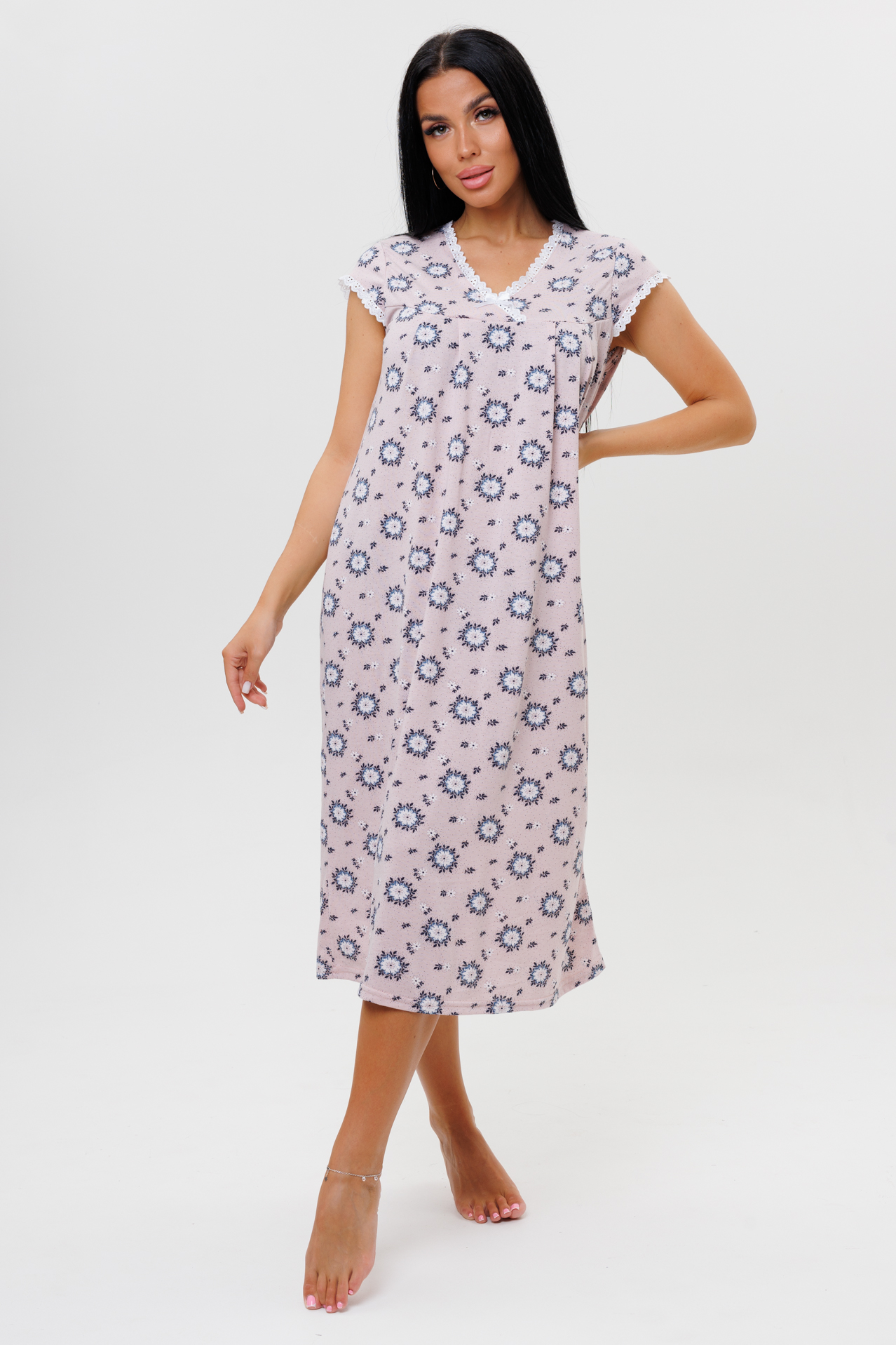 Ночная сорочка сшита из трикотажного полотна кулирки с содержанием 100% хлопка. Сорочка имеет: