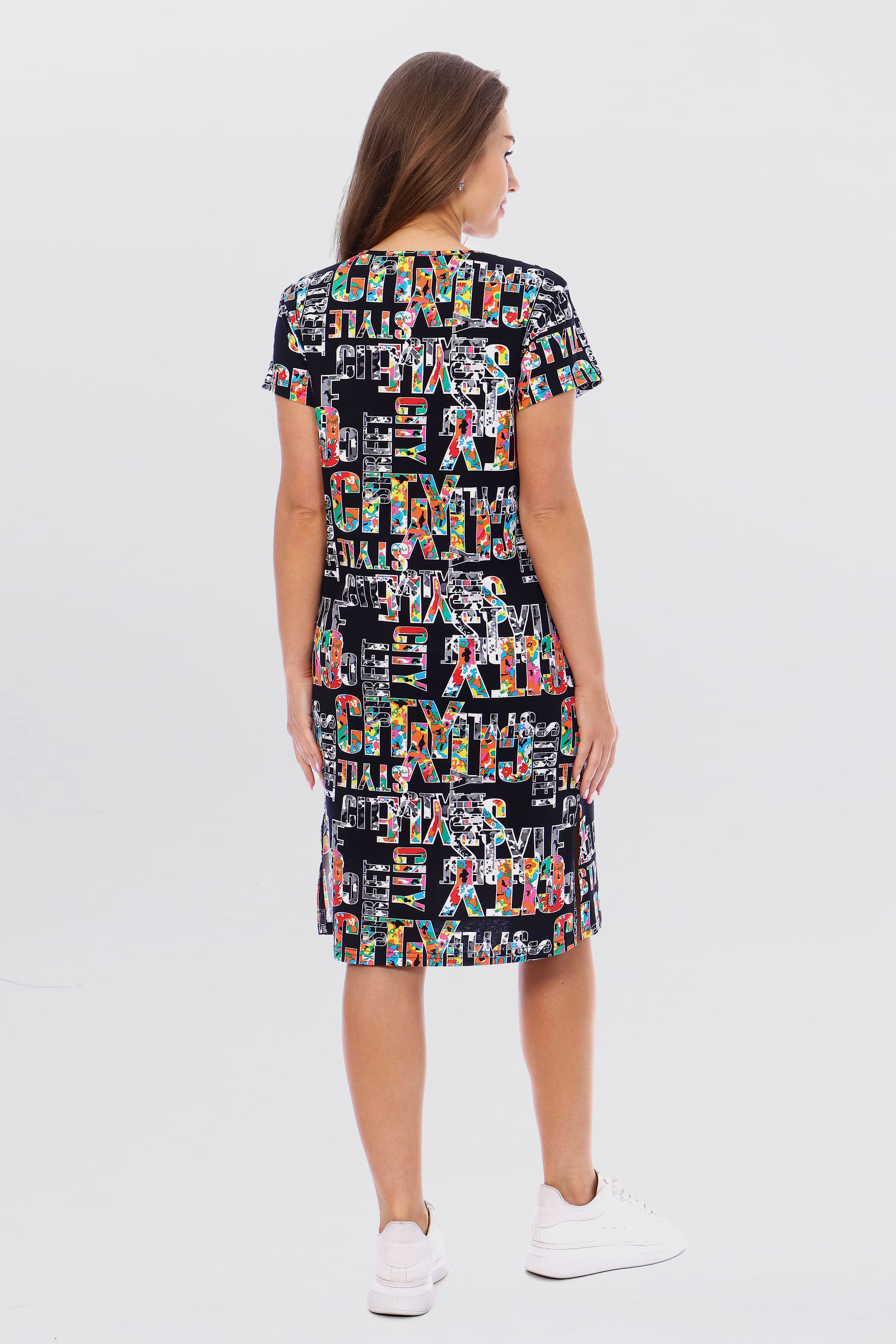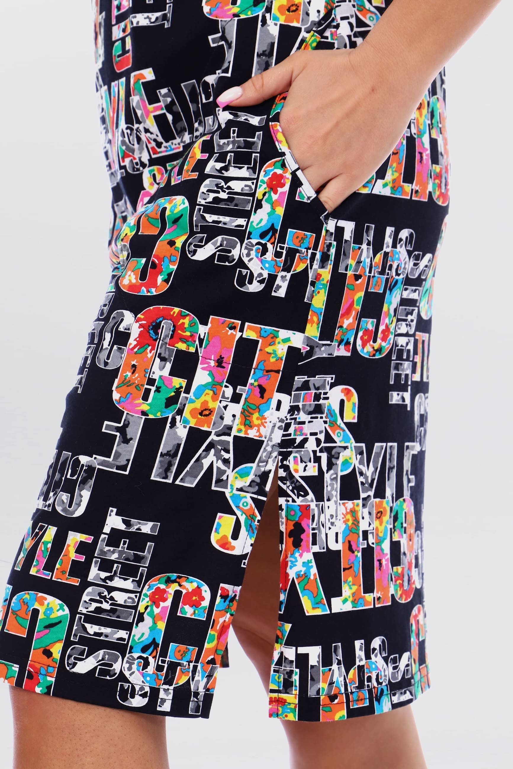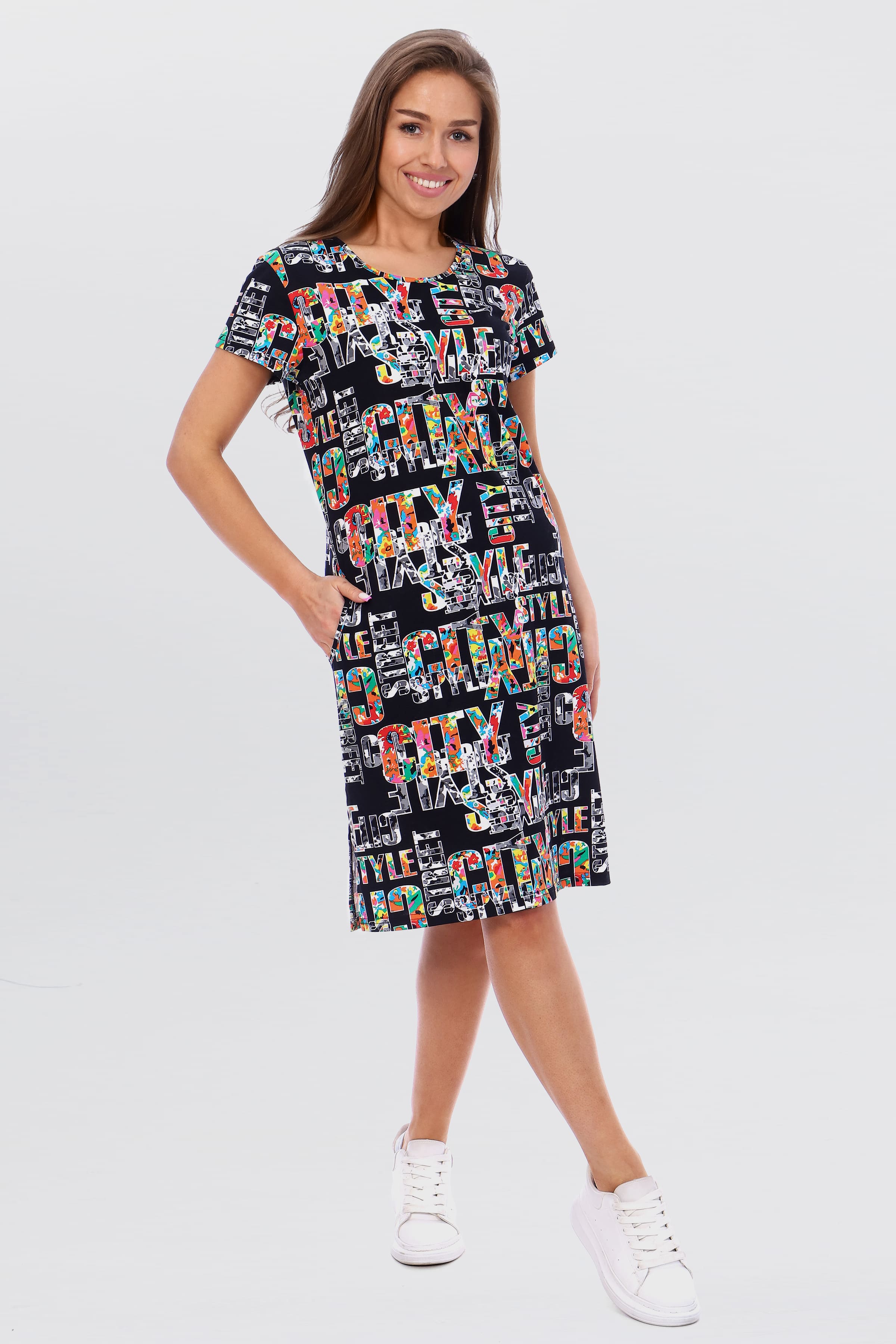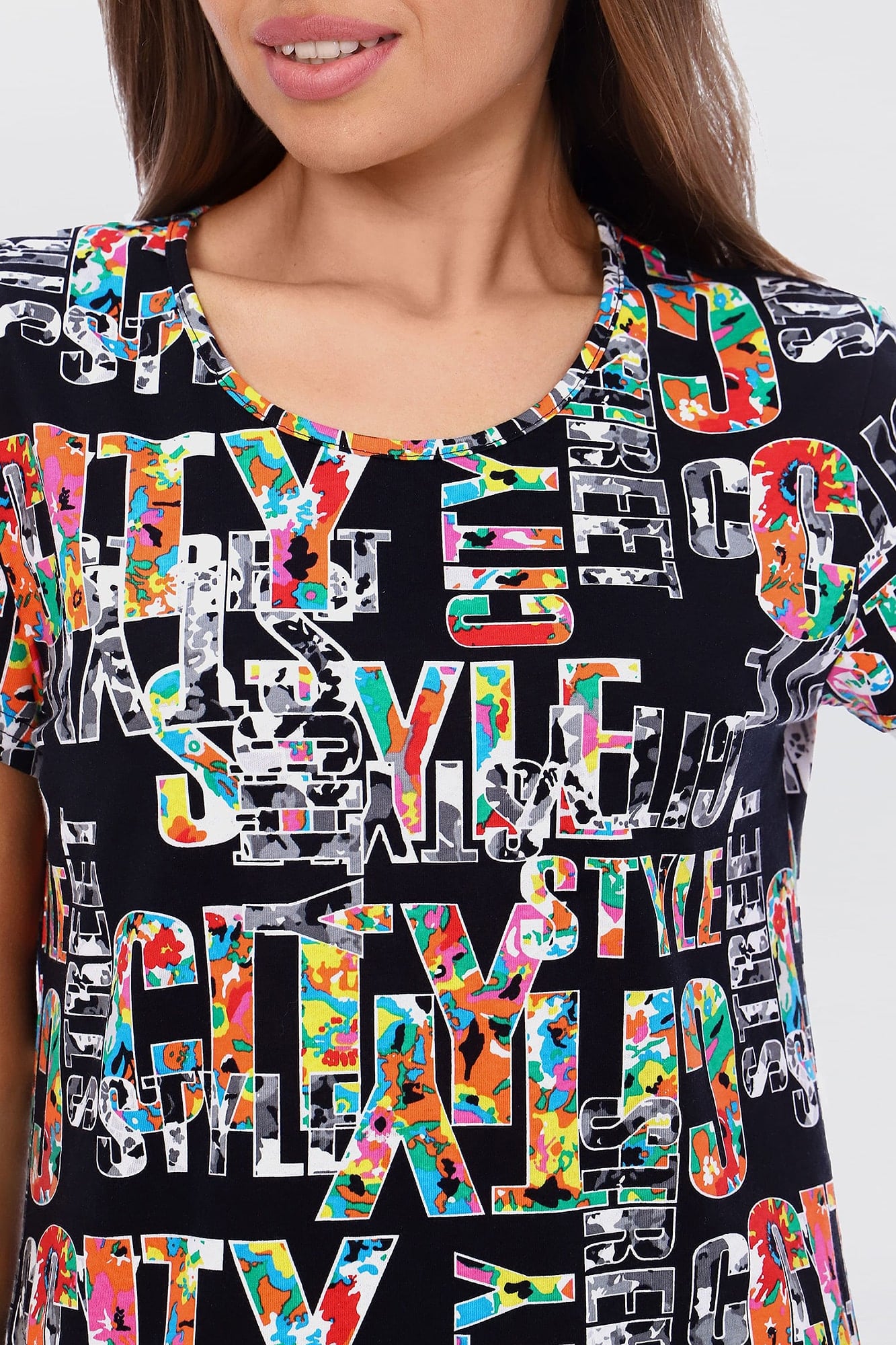 Яркая летняя туника из кулирки с коротким рукавом. Длина - до колена. В боковых швах карманы