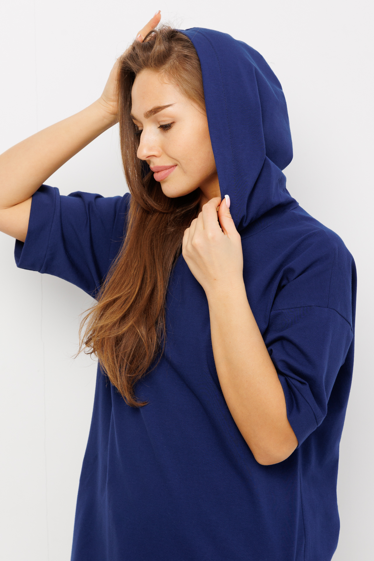 Туника свободная, спортивная, с капюшоном - её вполне можно использовать как летний вечерний костюм, как повседневный домашний наряд или как легкое платье для отдыха или путешествий.