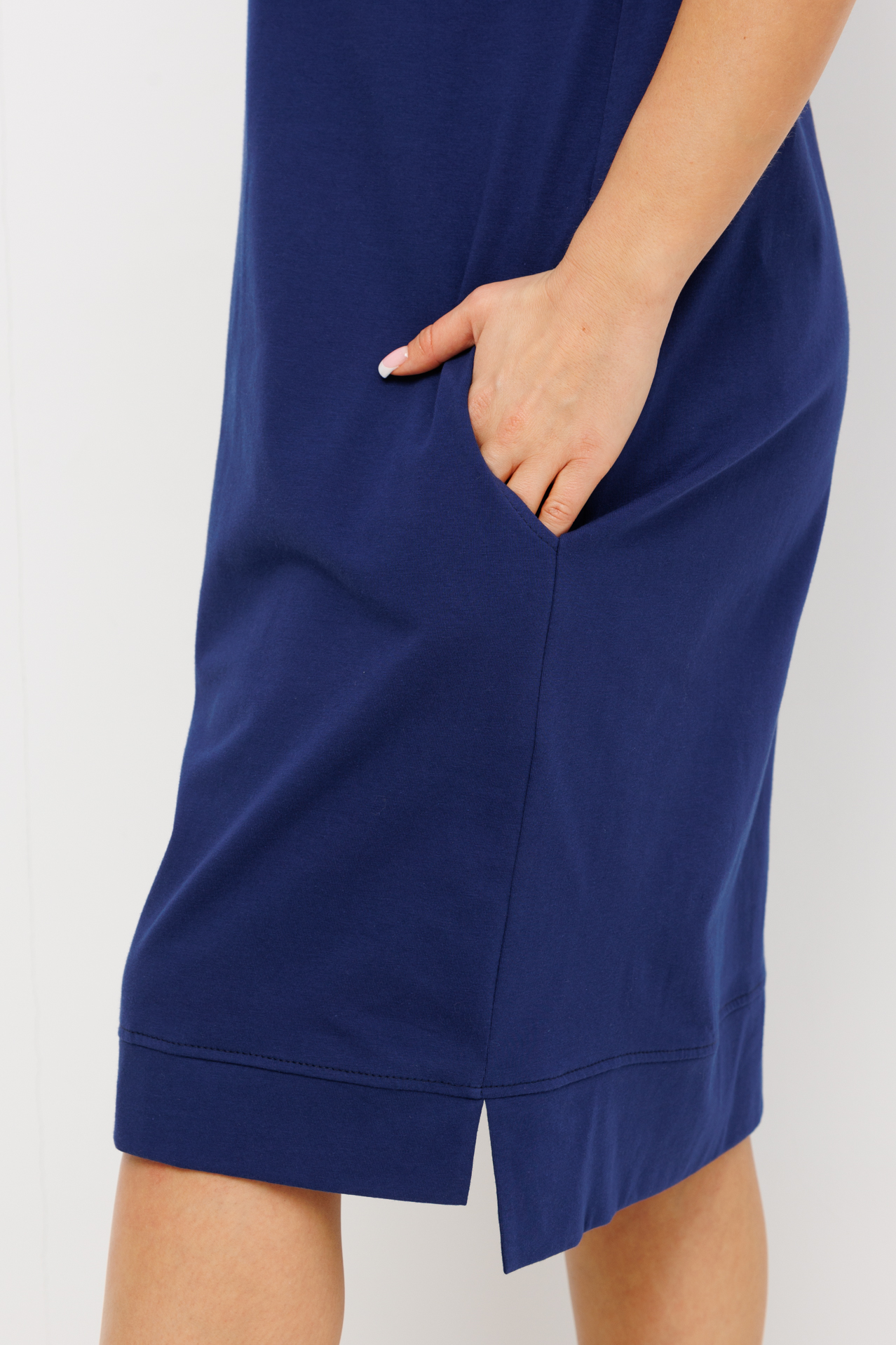 Туника с коротким рукавом, для Вашего удобства по бокам имеются небольшие разрезы, а в боковых швах карманы.
