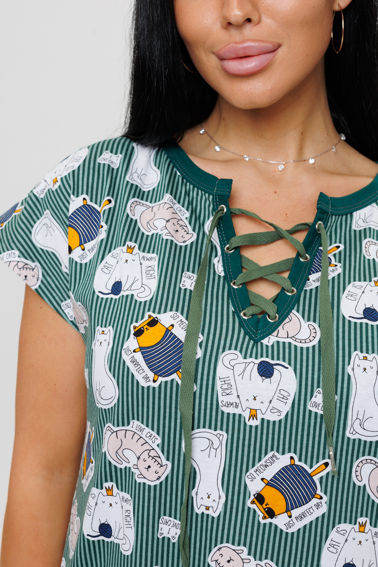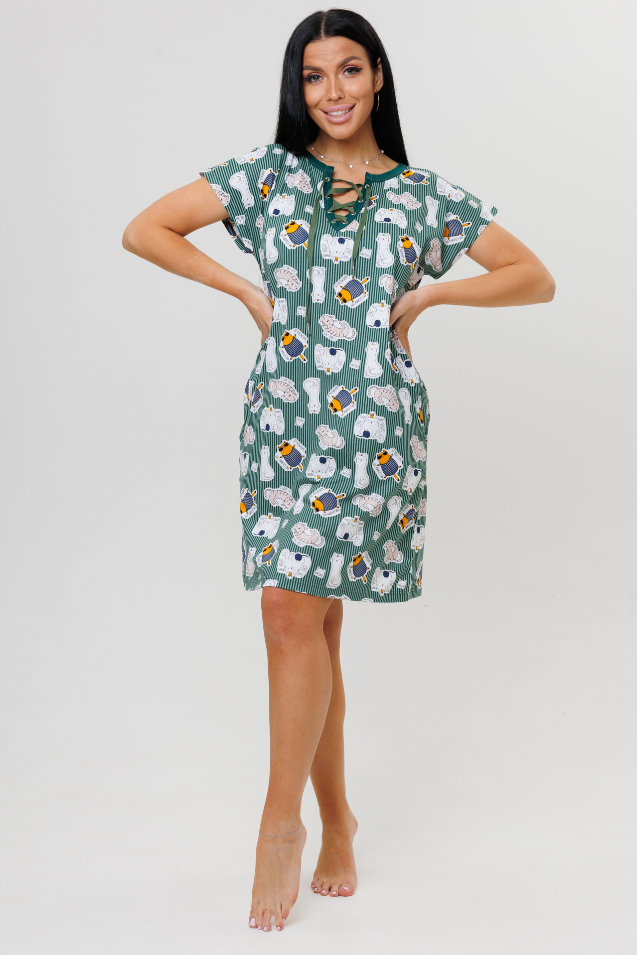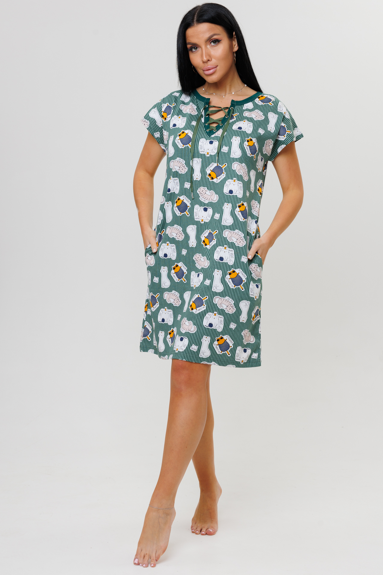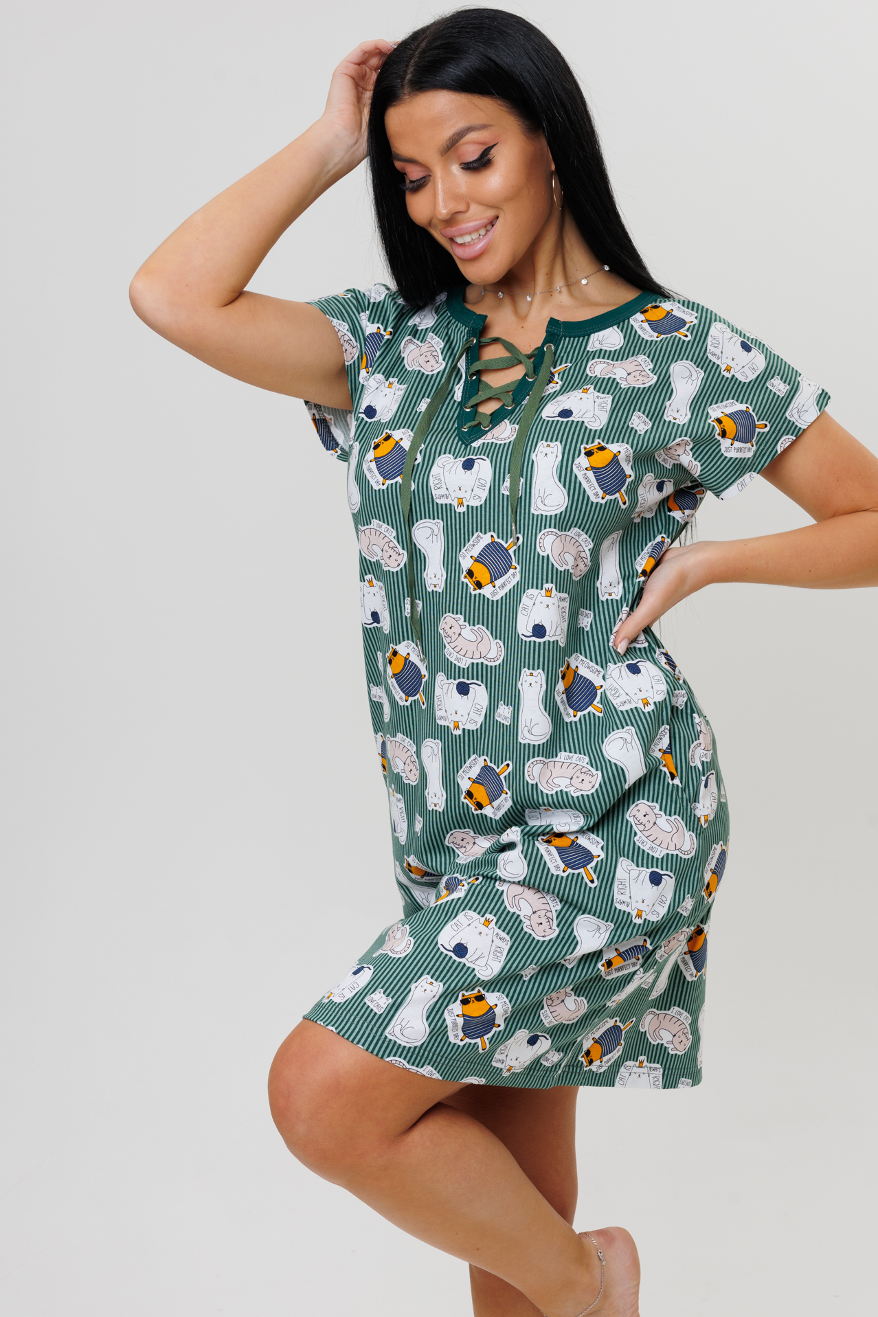 Туника из хлопкового трикотажного полотна - идеальное решение для дома и отдыха. Женственность тунике придают V-образный вырез с декоративной шнуровкой и карманы в боковых швах.