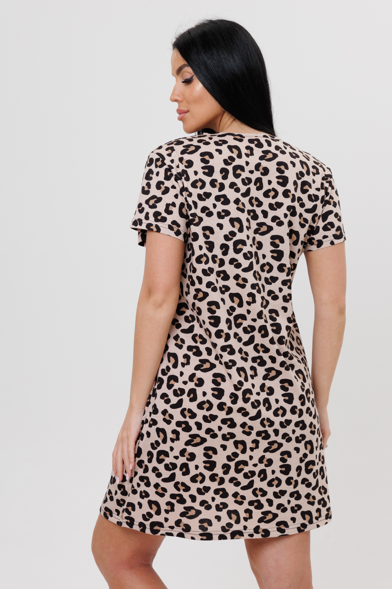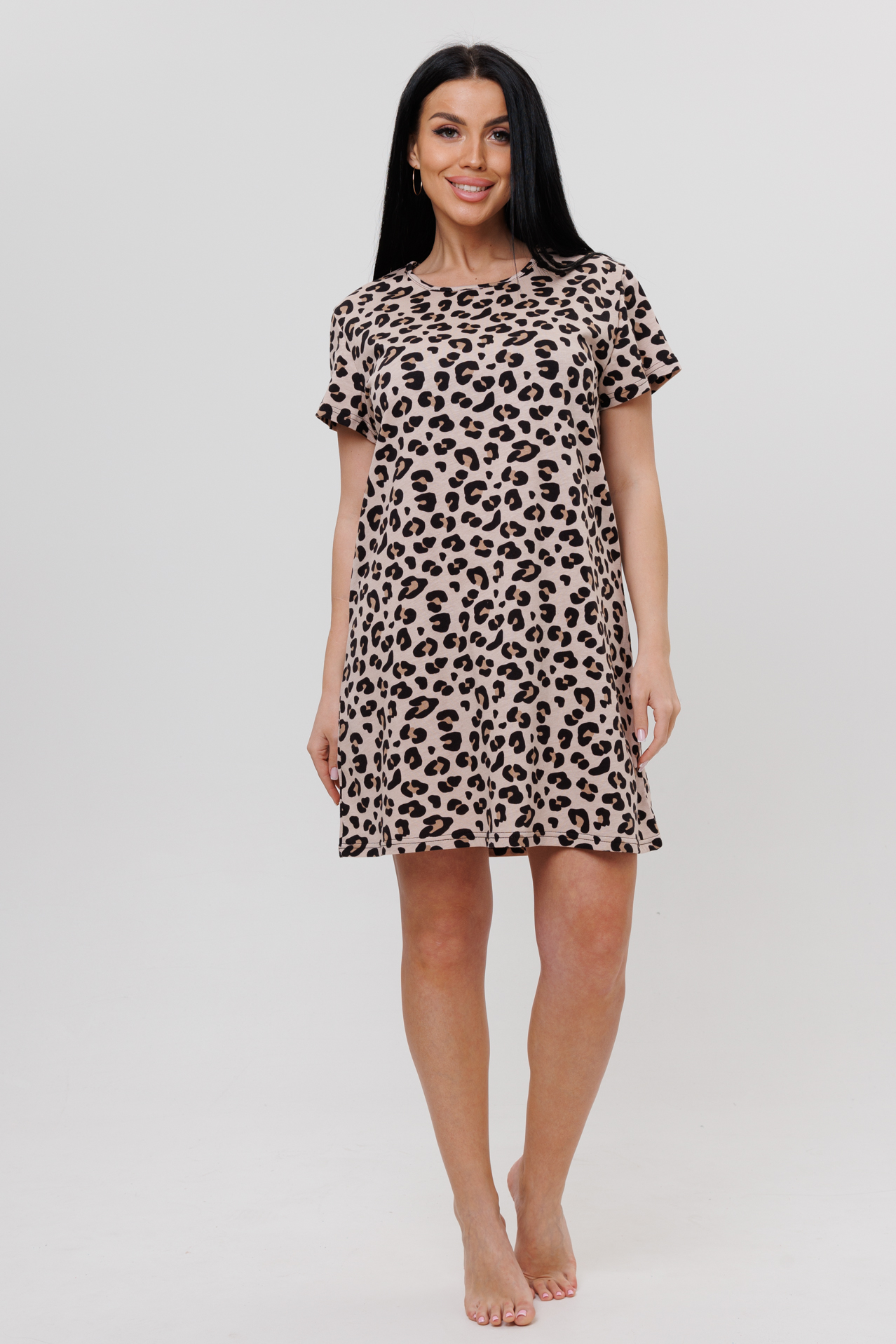 Легкая трикотажная туника с анималистическим принтом - воплощение изысканности и непринужденности. Туника выполнена из трикотажного полотна 100 % хлопка. Свободная летняя туника с коротким рукавом не стесняет движений. Круглый вырез подчеркивает контуры лица. Ее легко стилизовать разной обувью и аксессуарами, создавая различные образы. Она также будет актуальна и как легкое домашнее платье.